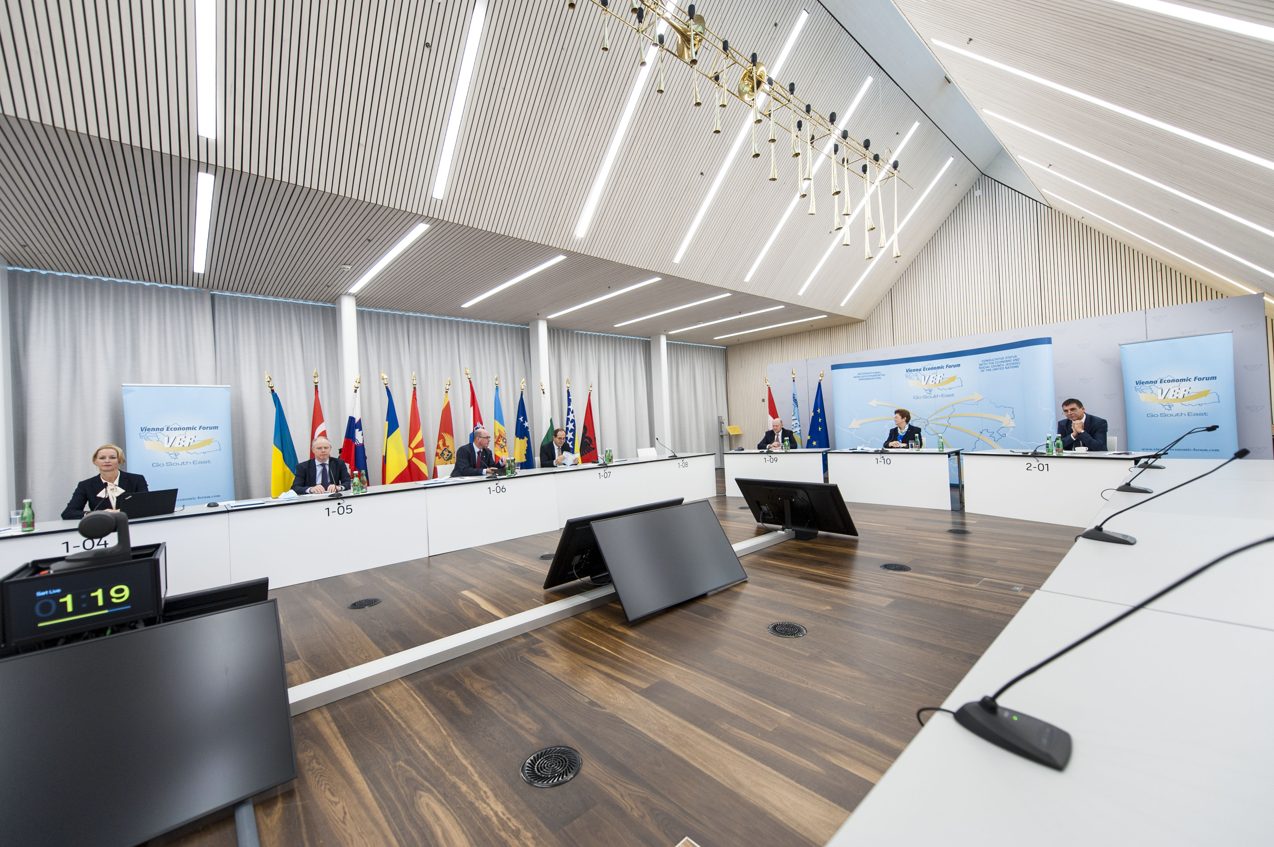 Eröffnungs- und Grußworte gab es von Botschafterin a.D. Dr. Elena Kirtcheva, Gründerin und Generalsekretärin des VEF, und DI Peter Umundum, Präsident des VEF. Als Ehrengast nahm Mariya Gabriel, EU-Kommissarin für Innovation, Forschung, Kultur, Bildung und Jugend, an der mehrstündigen Veranstaltung teil. Im Zentrum der Diskussion stand das Thema „Neue Arten der Mobilität in einer digitalen Welt. Regionale Wirtschaft am Scheideweg – Wachstum oder Rückgang?“, das unter anderem auch von Premierministern und hochrangigen Regierungsvertretern aus Kosovo, Ukraine und Nordmazedonien kommentiert wurde.