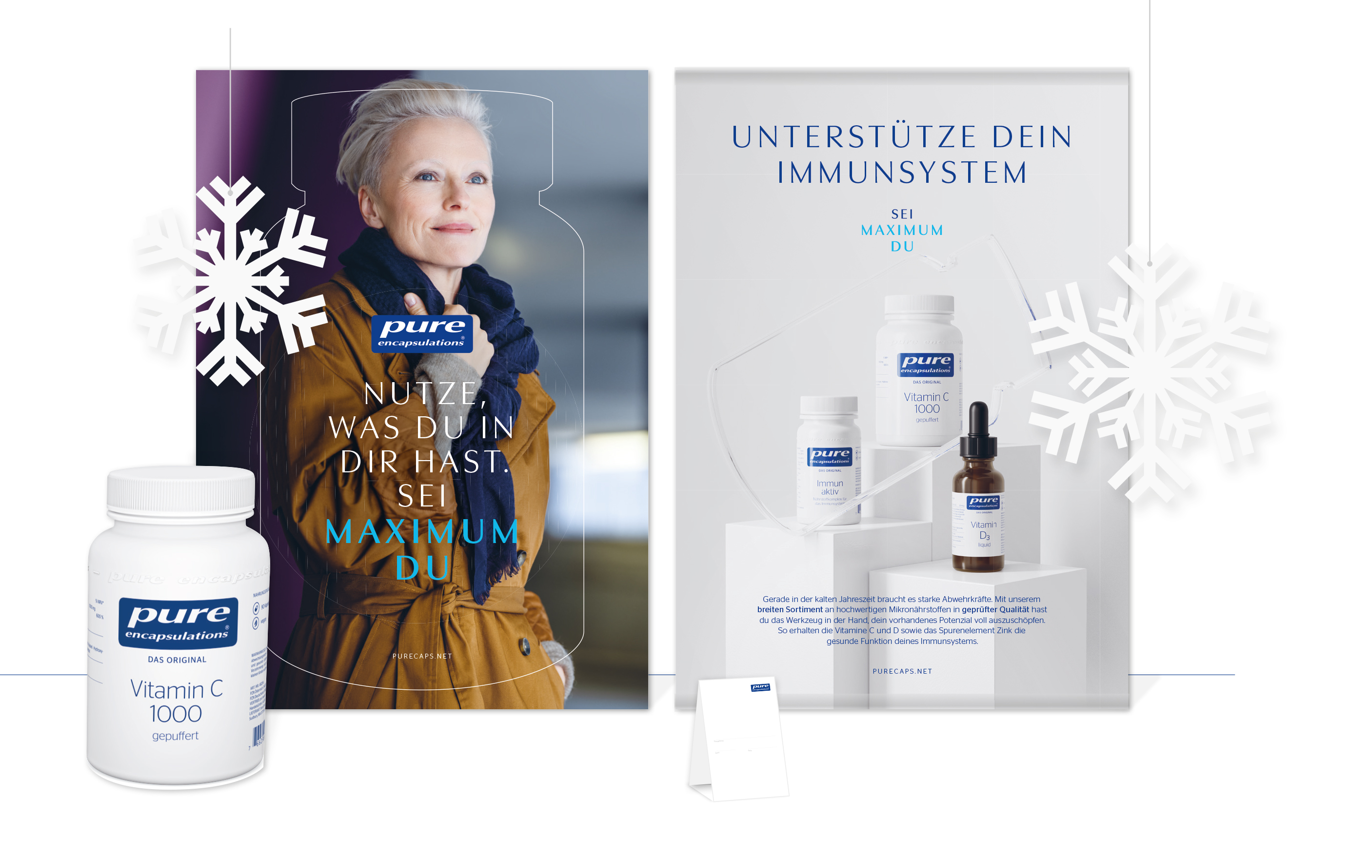 Mit dem neuen Markenauftritt zeigt sich Pure Encapsulations® künftig deutlich reifer und zeitgemäßer. Die Botschaft „Macht das pure Leichter leichter“ ist Vergangenheit, jetzt heißt es: „Sei Maximum Du“. Der neue Markenclaim stellt die Kunden in den Mittelpunkt und ermutigt sie, ihr vorhandenes Potential voll zu nutzen. Die Mikronährstoffmarke steht dabei als starker Partner zur Seite. Mit November startete die umfangreiche Markenkampagne in Österreich. Die 360-Grad-Kampagne bespielt alle zielgruppenrelevanten Medien mit Marken- und Produkt-Ads. Herz der neuen Positionierung ist der (Digital) Point of Care auf purecaps.net – die Vermittlung von Mikronährstoff- und Gesundheitswissen auf höchstem Niveau.