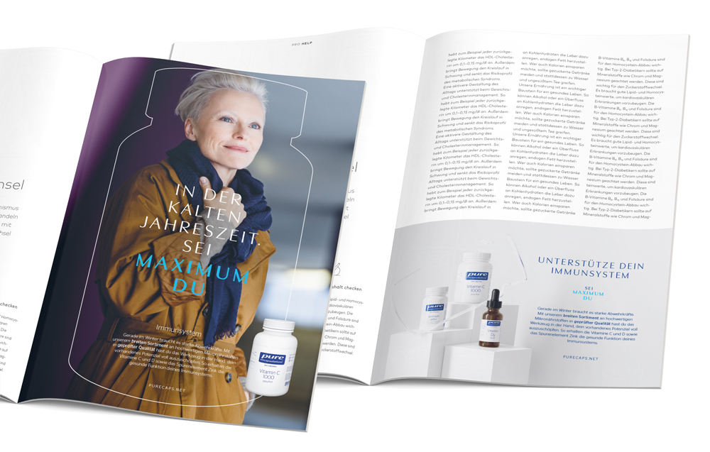 Die Premium-Mikronährstoffmarke positioniert sich neu und startet mit dem Claim „Nutze, was du in dir hast. Sei Maximum Du“ eine umfangreiche Markenkampagne. Die 360-Grad-Kampagne bespielt alle zielgruppenrelevanten Medien mit Marken- und Produkt-Ads. Herz der neuen Positionierung ist der (Digital) Point of Care auf purecaps.net – die Vermittlung von Mikronährstoff- und Gesundheitswissen auf höchstem Niveau.