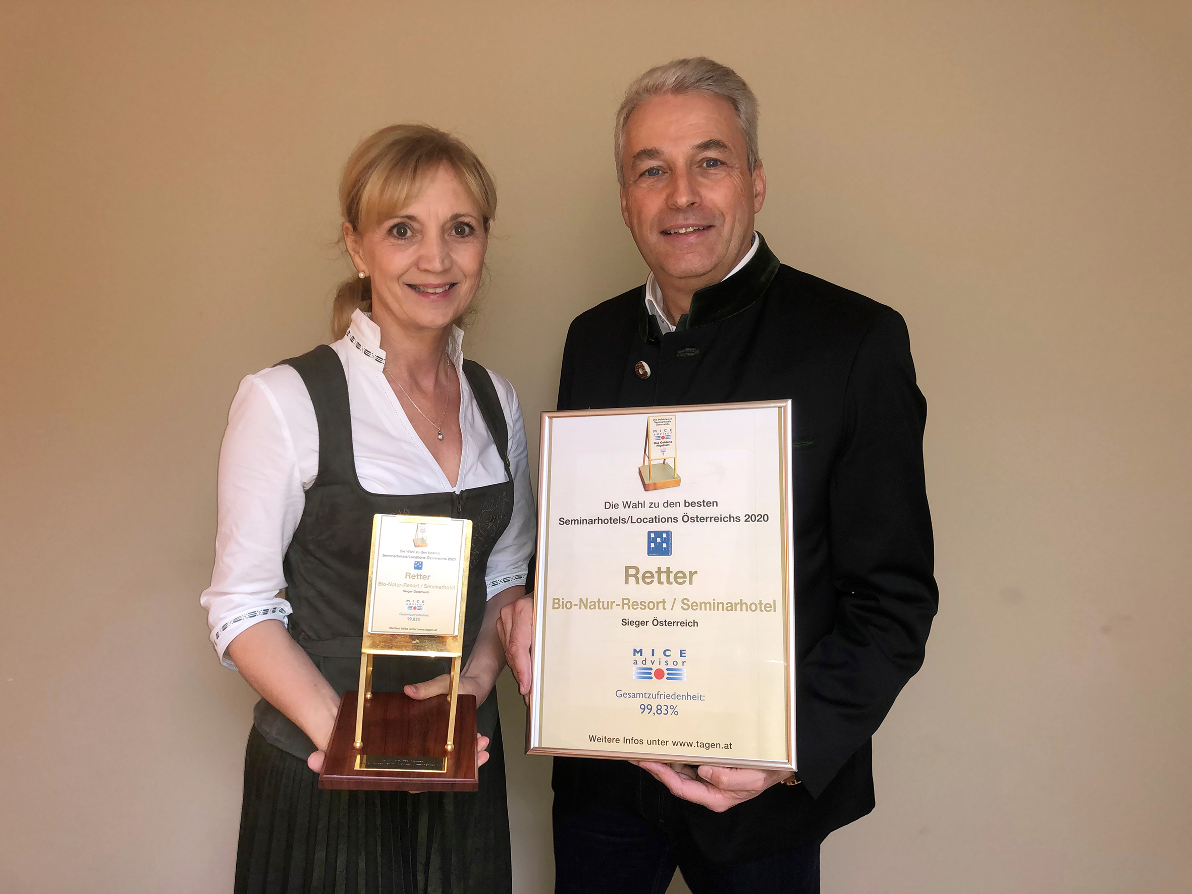 Den Titel des besten Seminarhotels Österreichs und damit das Goldene Flipchart dürfen sich zwei Betriebe teilen: Hotel-Restaurant Ammerhauser in Anthering (Salzburg) und Retter Bio-Natur-Resort/Seminarhotel in Pöllauberg (Steiermark).