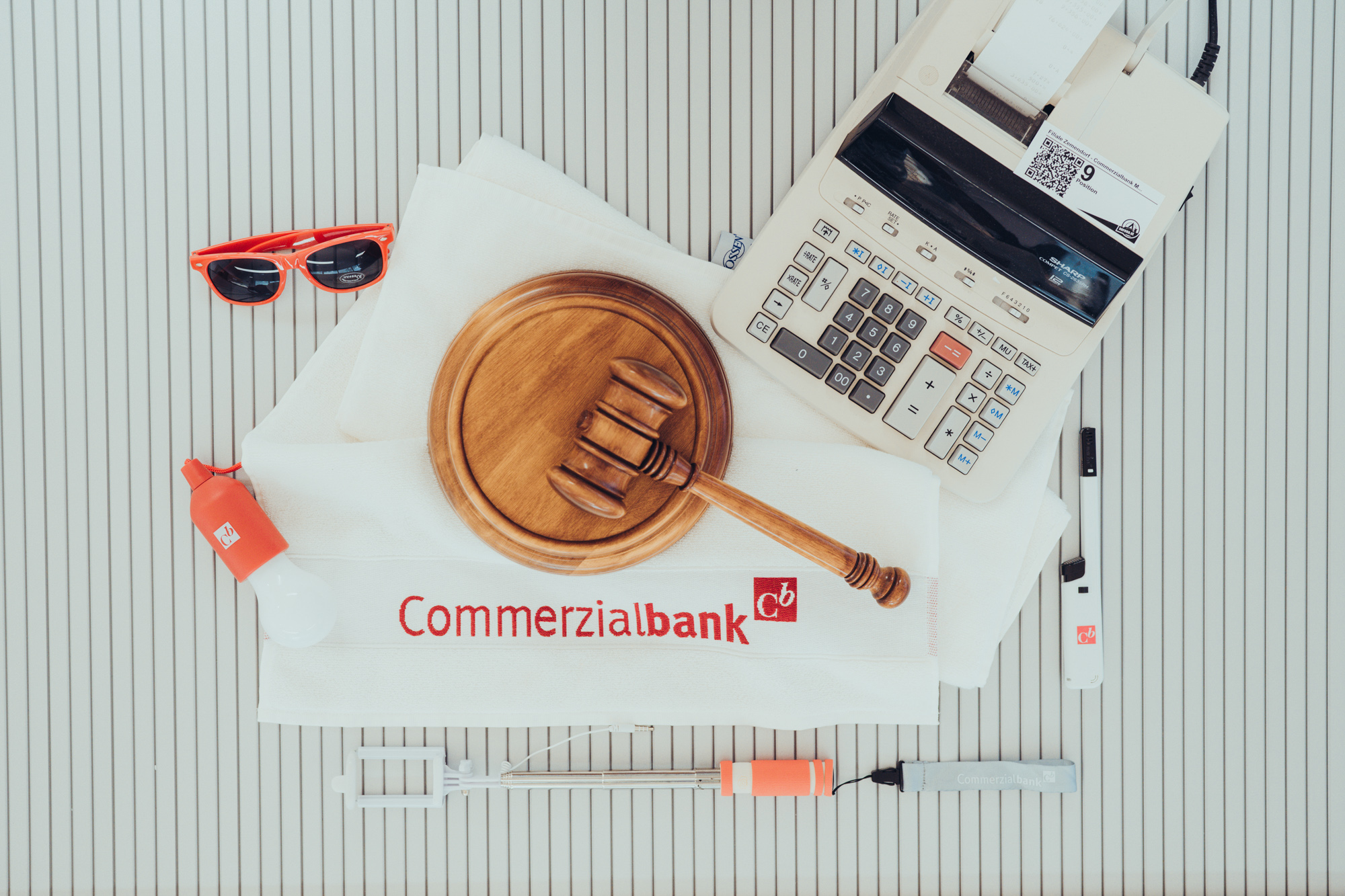Auch wer sich ein persönliches Andenken an die Bank sichern will, hat dazu die Chance: Teil der Versteigerung sind palettenweise Werbegeschenke und Give-Aways, viele davon mit Commerzialbank-Logo – von Sparbüchsen und Stoffhasen bis zu Aschenbechern, Taschenlampen und Picknickdecken. Auch die ein oder andere Position für Nostalgiker ist dabei, etwa alte Fotos der Bankfilialen.