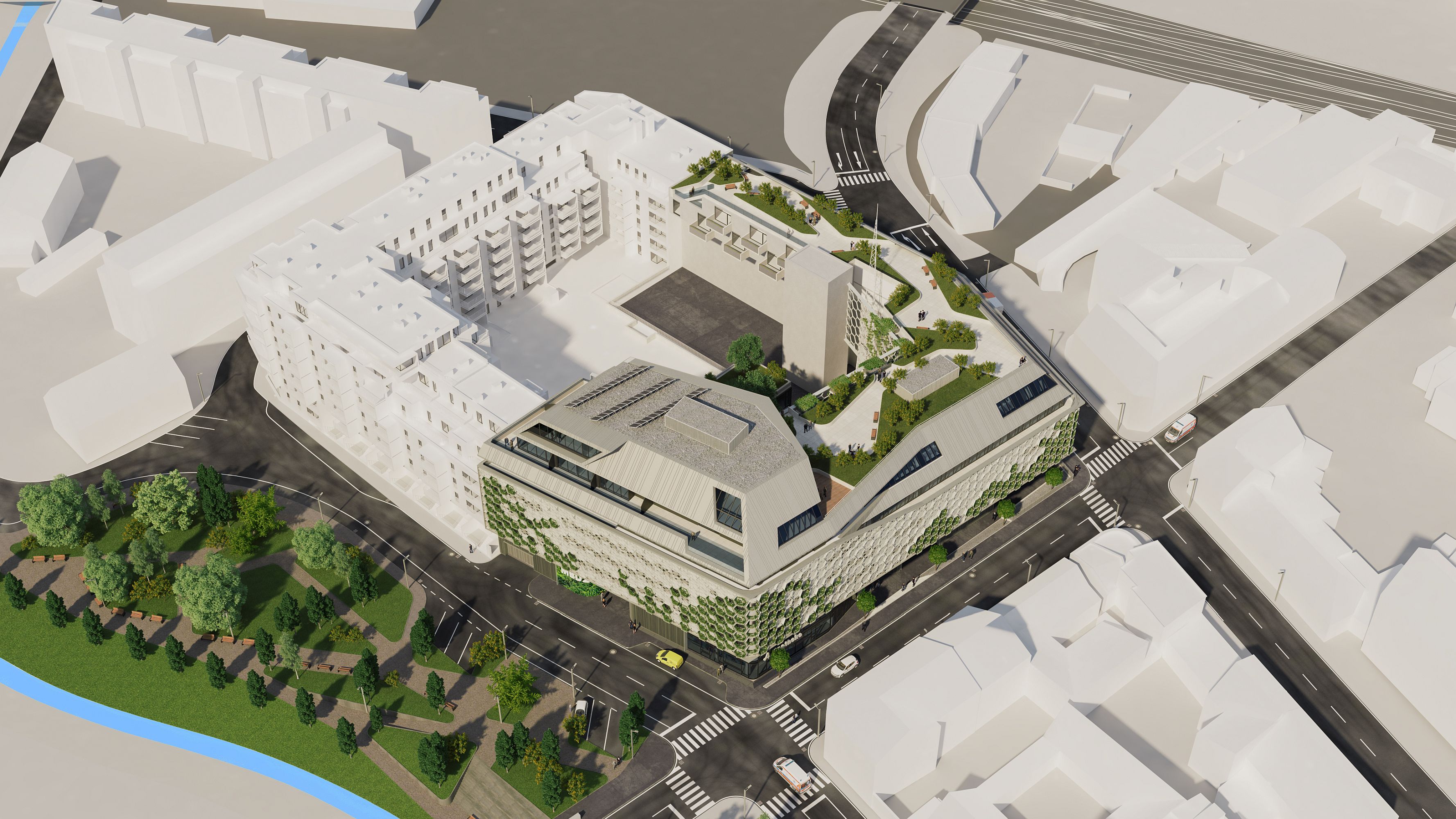Das letzte Obergeschoss des Gebäudes und die beiden Dachgeschosse eignen sich ideal als Tagesklinik oder Therapiezentrum, ein Teil der Dachflächen wird als Dachgärten gestaltet. Das Bauwerk ist klimaaktiv und hat die Klima Aktiv Gold Zertifizierung, Erdwärme sorgt für die Wärme- und Klimaversorgung des Gebäudes.
