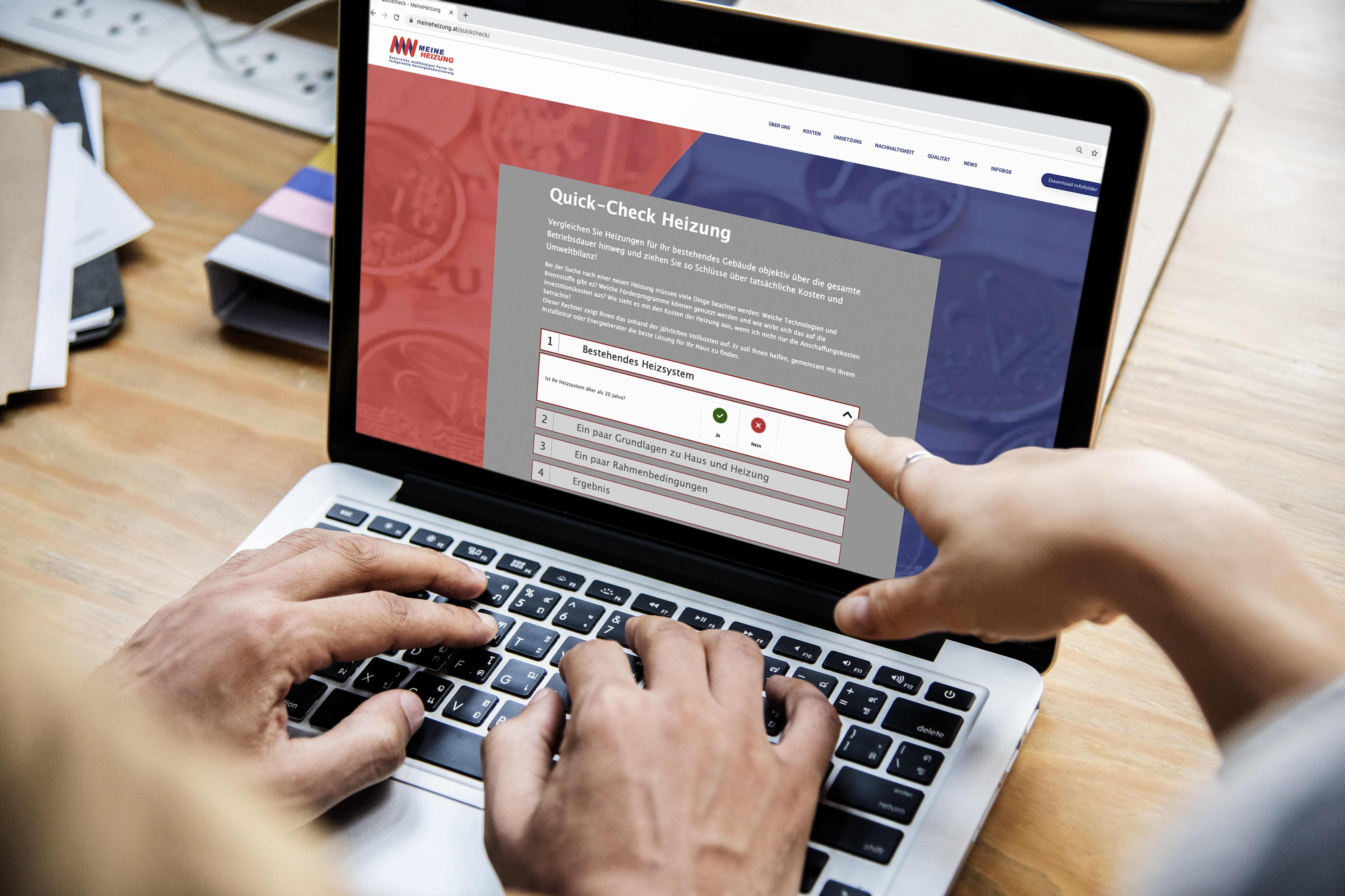 Was kostet die neue Heizung, wenn neben der Anschaffung auch die nächsten 20 Jahre betrachtet werden? Ein „Quick-Check” auf meineheizung.at verschafft Klarheit: Der Rechner vergleicht, angepasst an die individuelle Wohnsituation, die bestehende mit verschiedenen neuen Heizungen objektiv und über die gesamte Betriebsdauer hinweg. Neben den Kosten wird auch der CO2-Ausstoß unterschiedlicher Heizungssysteme ermittelt.