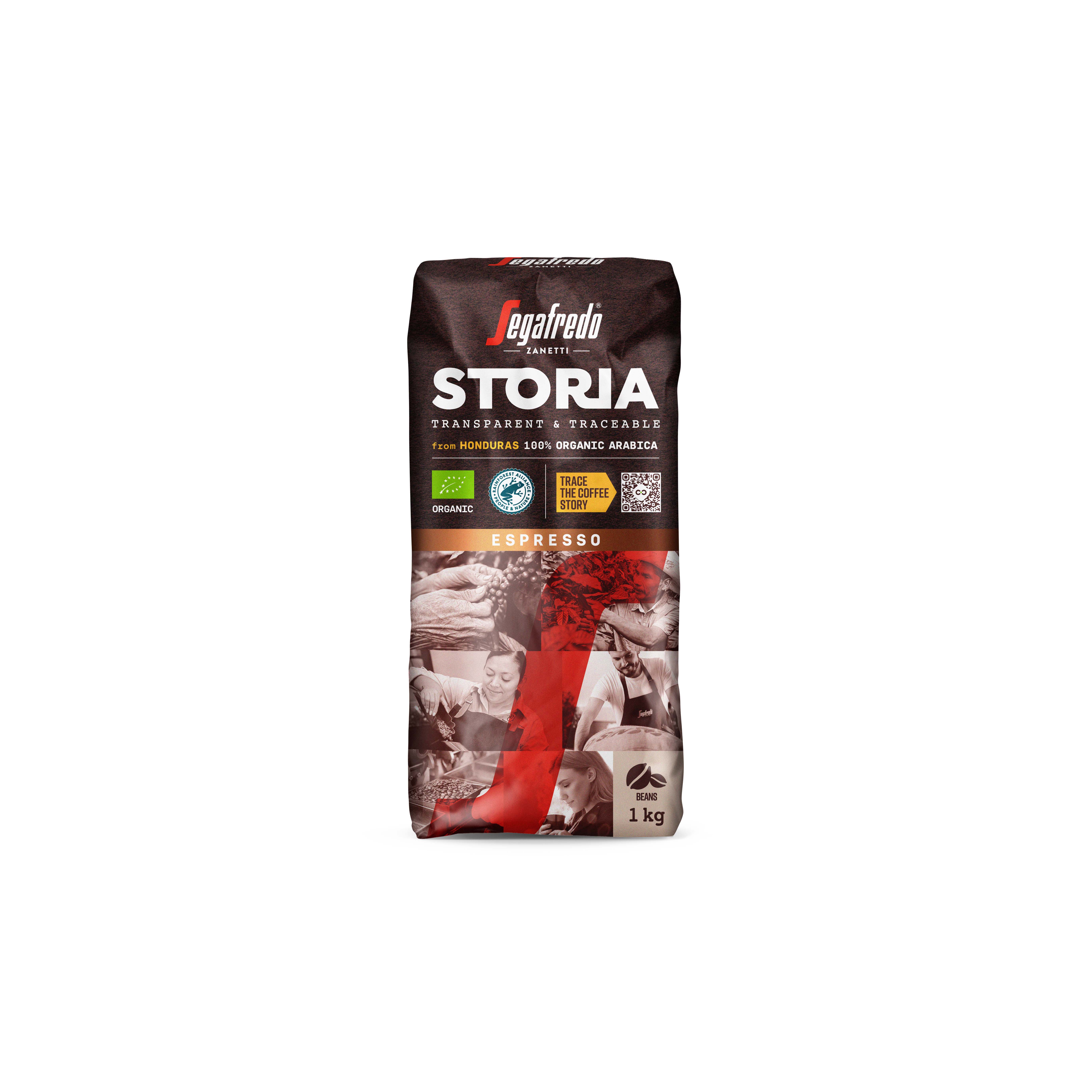 Mit STORIA beweist das Familienunternehmen Segafredo Zanetti, welchen hohen Stellenwert Transparenz, Nachhaltigkeit und faire Arbeitsbedingungen haben. Die Verpackung zieren Fotos von Menschen, die tatsächlich an der Entstehung des Produktes beteiligt sind. Von Honduras, dem Gebiet, aus dem der Rohkaffee kommt, bis hin nach Finnland, wo der Kaffee in der firmeneigenen Rösterei veredelt wird.