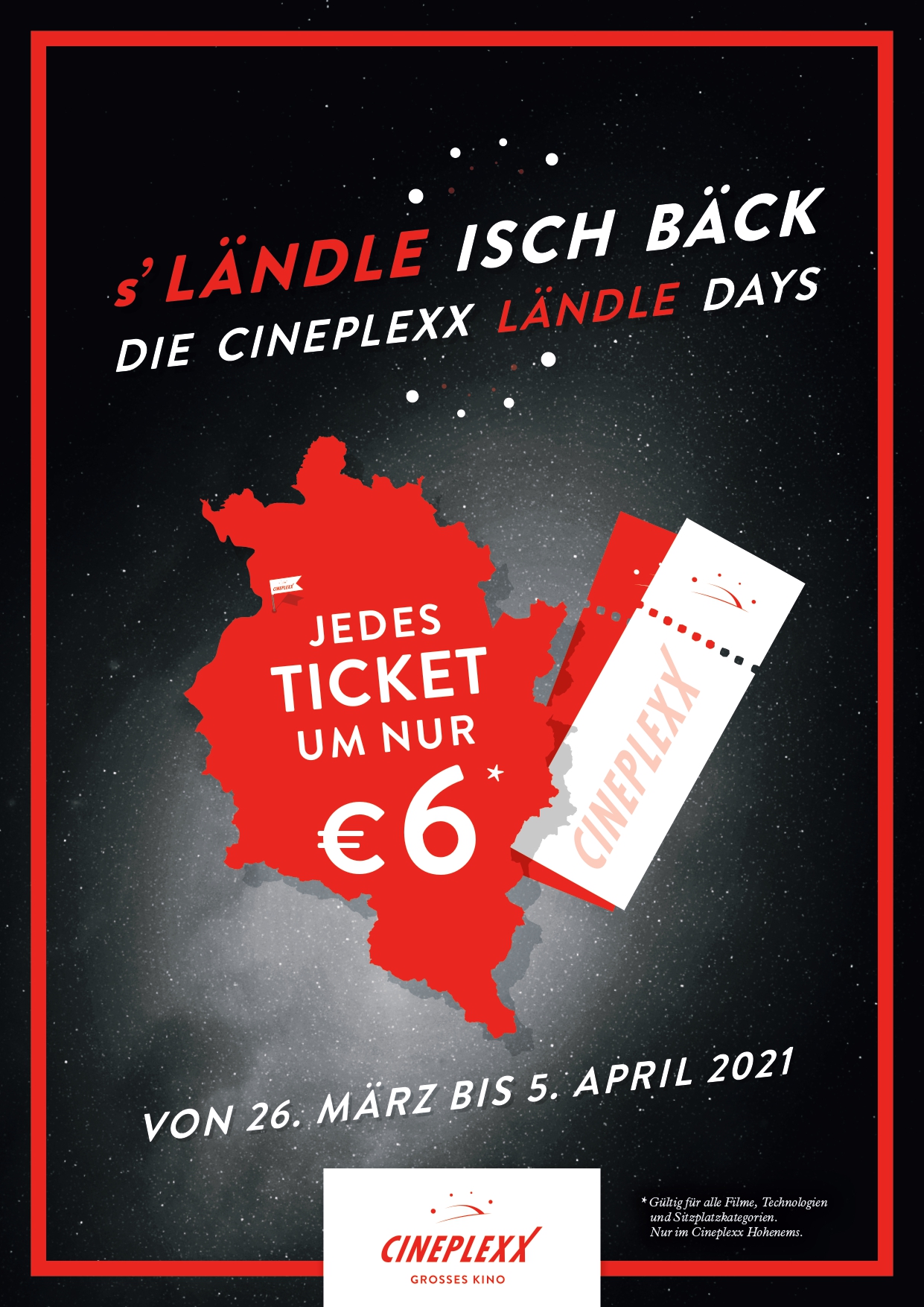 - Cineplexx LÄNDLE DAYS: vom 26. März bis 5. April um nur 6 € in jeden Film