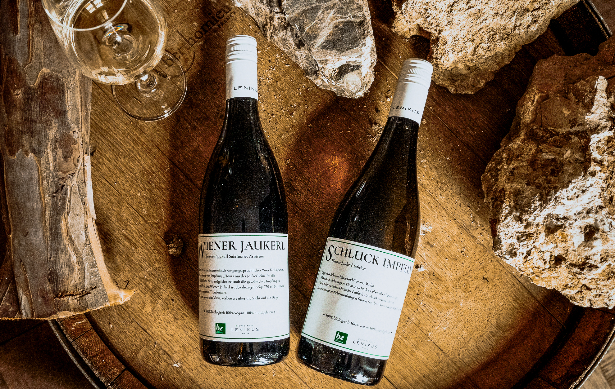 Wenn zwei Wiener Urgesteine wie die Wiener Bezirkszeitung und das Bioweingut Lenikus zusammenfinden, entstehen großartige Produkte. Und so wurde gemeinsam das Wiener Jaukerl und die Schluck Impfung, zwei 750ml "Seren" aus bestem gegorenen Traubensaft, ins Leben gerufen.