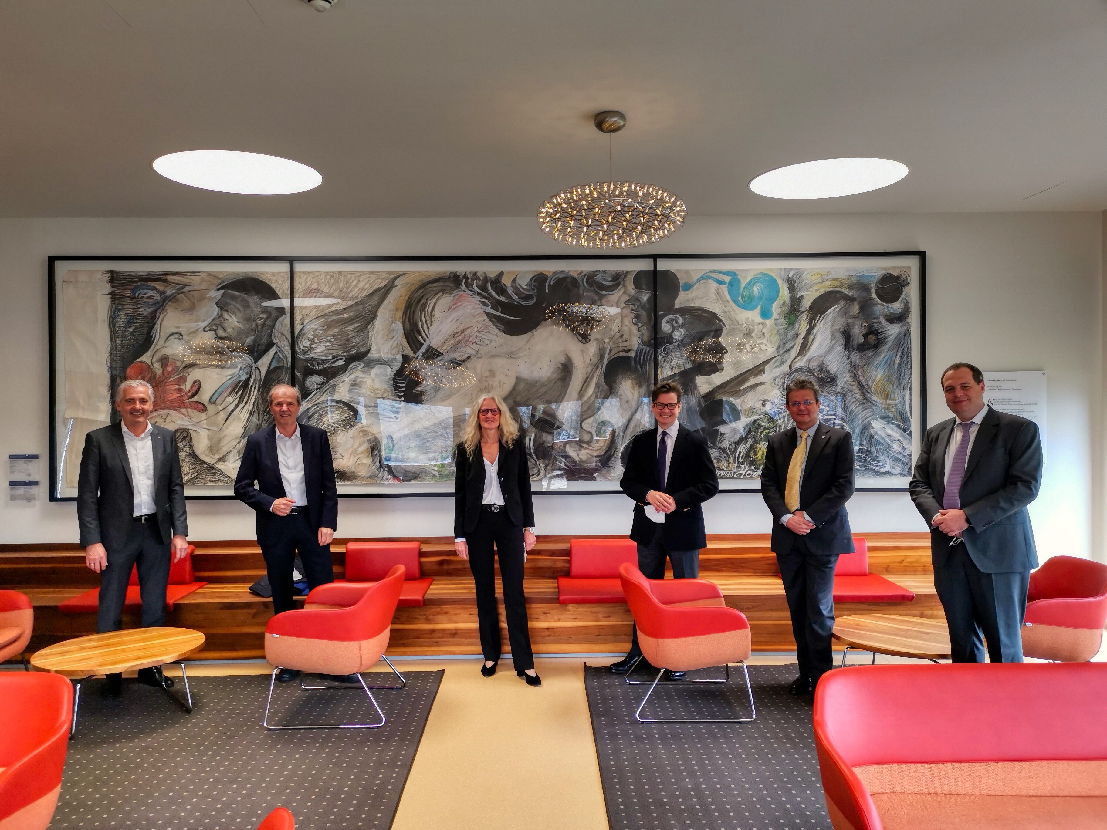 Die Industriellenvereinigung (IV) besuchte gemeinsam mit dem Geschäftsführer des burgenländischen Unternehmens Dr. Bohrer Lasertec GmbH, PD Dr. Markus Bohrer, am 14. April die Danube Private University (DPU) und konnte sich von den Lehr- und Forschungsräumlichkeiten der DPU überzeugen lassen. Anschließend stellte Direktor Robert Wagner (DPU) dem Generalsekretär der IV auf Bundesebene, Mag. Christoph Neumayer, sowie der IV Burgenland, vertreten durch GF Dr.in Ingrid Puschautz-Meidl, Präsident Manfred Gerger und Vize-Präsident Johann Bock, ihre strategischen Pläne in Niederösterreich und im Burgenland vor, wofür die IV ihre volle Unterstützung zusagte. Ziel der DPU ist es, ihre Forschungsstrategie vermehrt auf die heimische Industrie auszurichten und somit gemeinsam mit österreichischen Unternehmen Innovation im Bereich Medizin & Technik voranzutreiben. Insbesondere die Pläne der DPU im Burgenland interessierten die burgenländischen Vertreter der IV. So wurde vereinbart, gemeinsam eng in der medizinischen Forschung zusammenzuarbeiten.