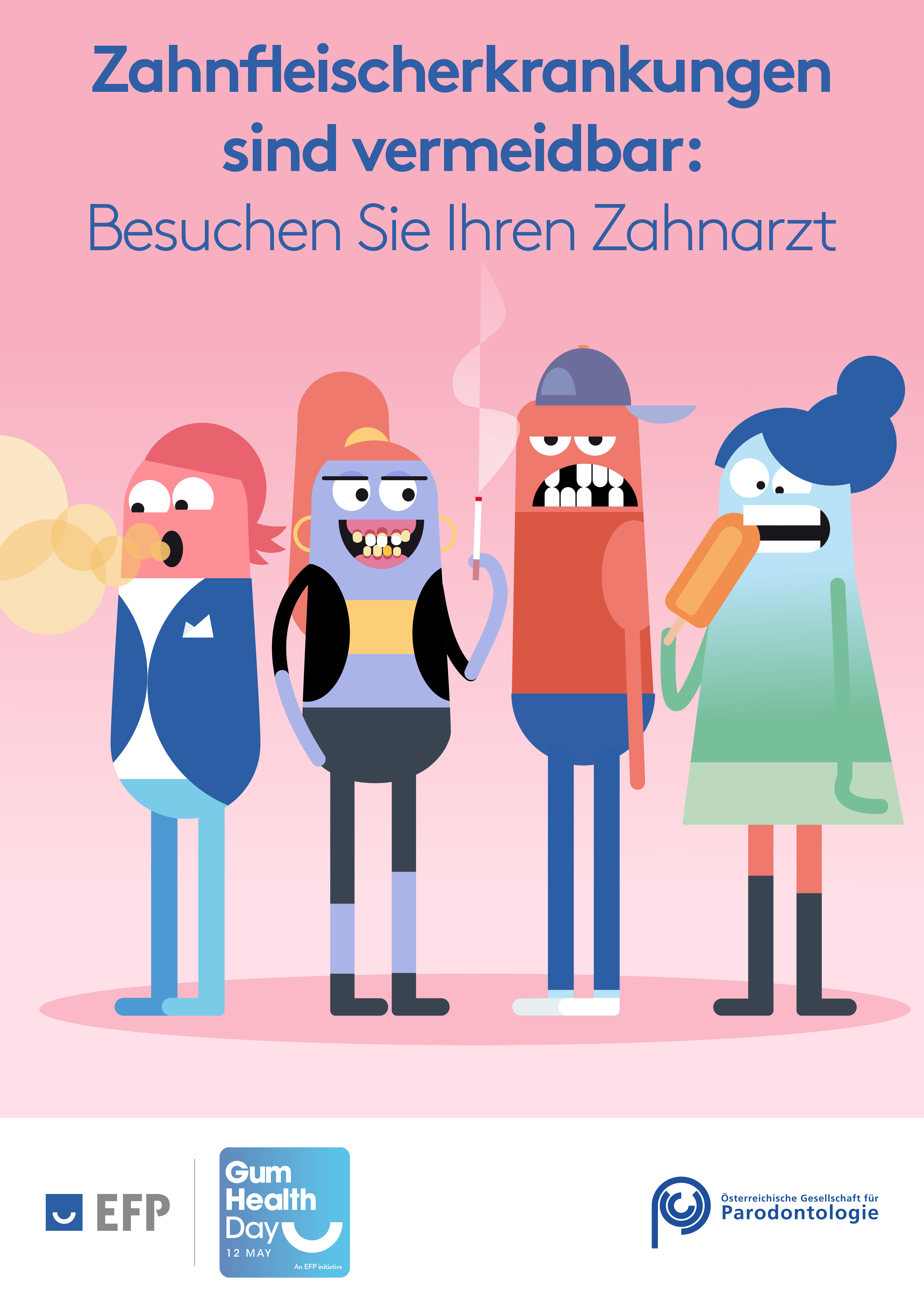 Die EFP und die Österreichische Gesellschaft für Parodontologie (ÖGP) möchten die Awareness unter der Bevölkerung heben und rücken jährlich am 12. Mai die Mundgesundheit mit einer speziellen Initiative in den Vordergrund. Die diesjährige Kampagne zeigt auf, welche negativen Auswirkungen Parodontitis – so sie nicht erkannt und behandelt wird – im Alltag haben kann: