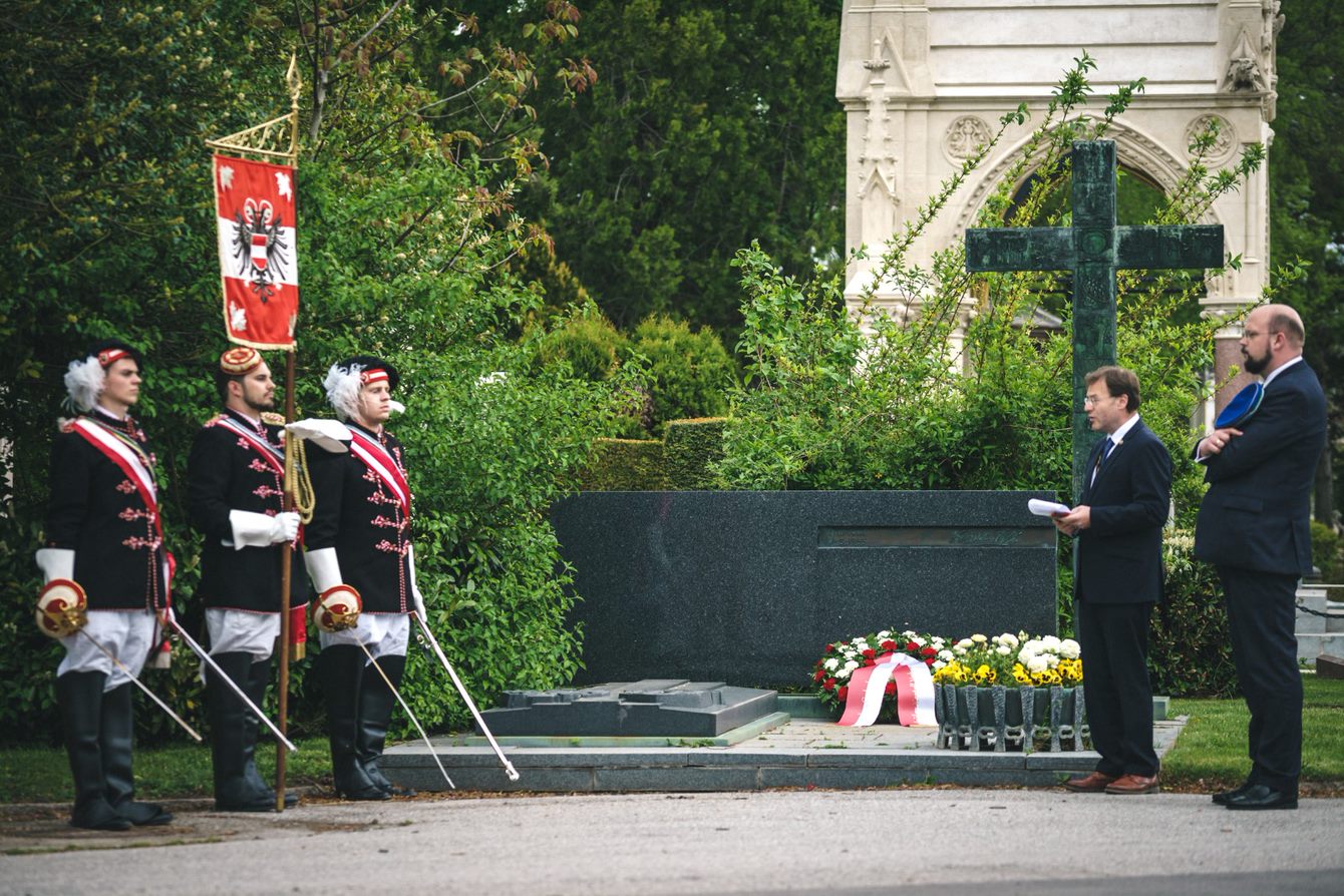 Am 9. Mai 1965 starb Leopold Figl an den Folgen seiner langjährigen KZ-Gefangenschaft. Anlässlich seines Todestages wurde an seinem Grab ein Kranz vom Mittelschüler-Kartell-Verband (MKV) niedergelegt. Coronabedingt fand dies im kleinsten Rahmen statt.