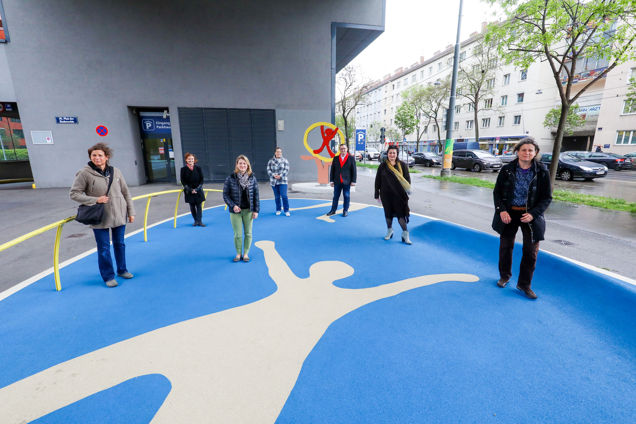 Die Geschwister Christine und Irene Hohenbüchler haben dem Platz der Kinderrechte in Wien 1200 zum 30-Jahr Jubiläum der UN-Konvention über die Rechte des Kindes einen neuen künstlerischen Anstrich verliehen. Für dieses KÖR- &Jugend-Projekt haben die Künstlerinnen die von Schüler*innen der Europaschule entworfene Skulptur, die anlässlich der Benennung des Platzes seinerzeit installiert wurde, liebevoll eingebunden und umspielt.