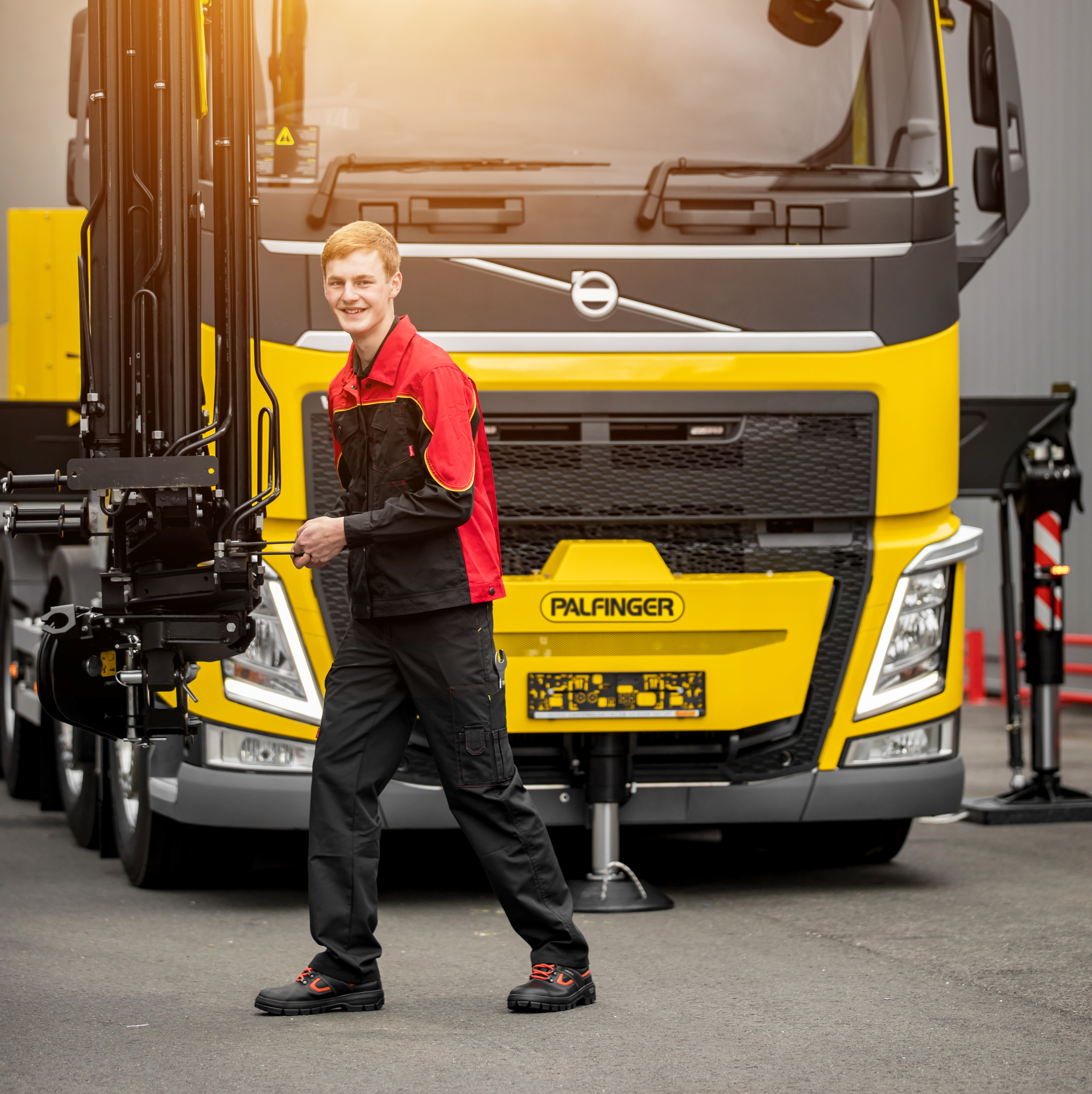 Zu den Aufgaben Hubert Ozimeks zählt auch der fachgerechte Aufbau der Kraneinheiten auf LKWs. Bei PALFINGER beschreibt exakt dieser Arbeitsschritt die Schnittstelle, die das Fahrzeug, die moderne Technologie des Aufbaus und die von PALFINGER entwickelten digitalen Tools zu einer vernetzten Einheit werden lassen. „Dafür lerne ich das korrekte Montieren, Einstellen und Prüfen elektrischer, hydraulischer und pneumatischer Systeme“, erklärt Ozimek. An ihm liegt es, dass Mensch und Maschine effizient und effektiv zusammenarbeiten können. „PALFINGER nutzt und treibt die digitale Transformation auf allen Ebenen voran“, hält PALFINGER CEO Andreas Klauser fest. Und fährt fort: „Wir gestalten aktiv die Zukunft. Aus diesem Grund investieren wir in die beste Ausbildung unserer Lehrlinge und künftigen Fachkräfte.“ Rund 95 % aller Lehrlinge verfolgen nach Ablauf ihrer Lehrzeit ihre weitere Karriere innerhalb der weltumspannenden Organisation von PALFINGER.