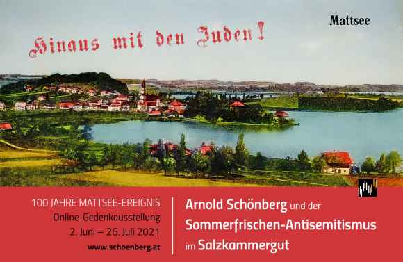 Ab 2. Juni wird die von Therese Muxeneder kuratierte Ausstellung „100 Jahre Mattsee-Ereignis. Arnold Schönberg und der Sommerfrischen-Antisemitismus im Salzkammergut“ auf www.schoenberg.at präsentiert.