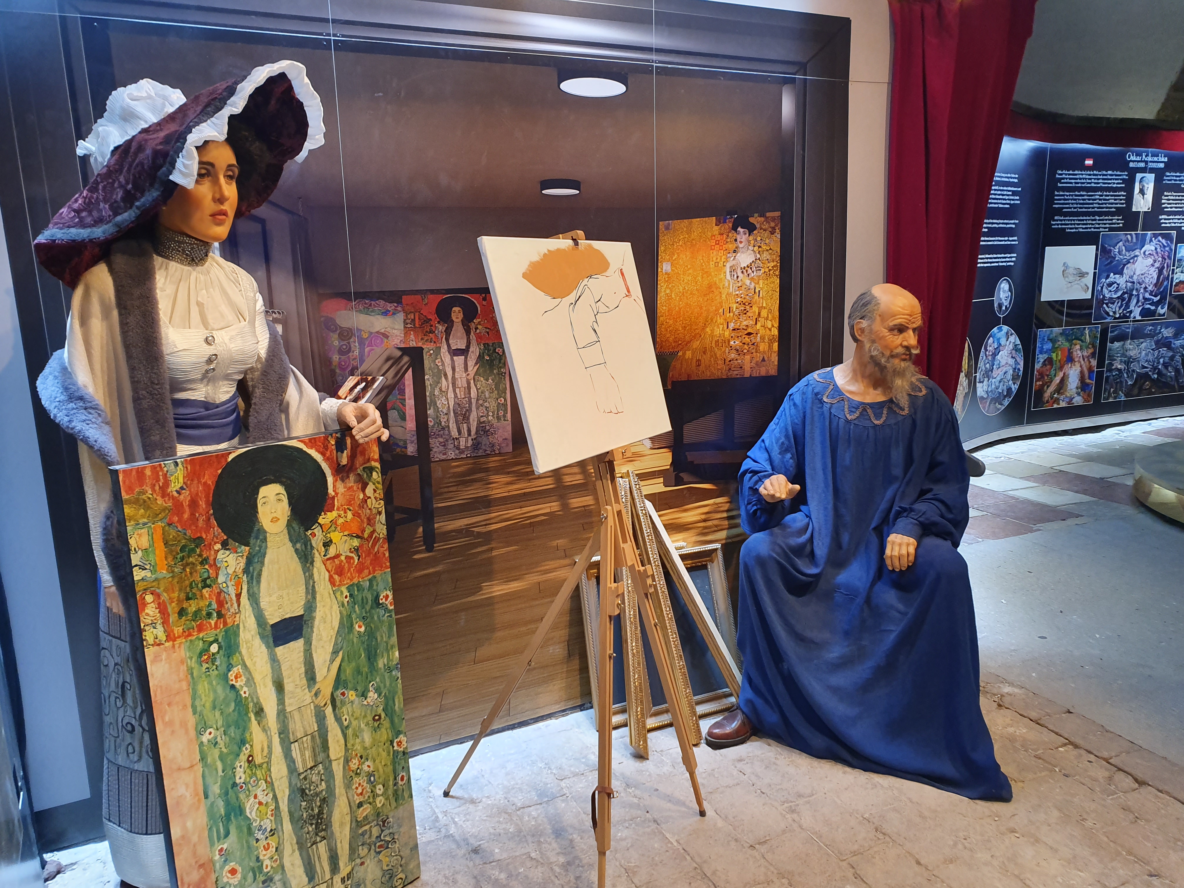 Der Vorraum des Walzersaals wurde neu zum Thema „Wiener Moderne“ gestaltet, mit den Hauptakteuren Gustav Klimt, Egon Schiele und Oskar Kokoschka. Werfen Sie einen Blick in die Ateliers der Künstler und erfahren Sie mehr über den Werdegang der Maler und ihr Schaffenswerk. Auch Ernst Fuchs, Friedensreich Hundertwasser und Gottfried Helnwein werden thematisiert. Machen Sie Ihr persönliches Erinnerungsfoto im Studio mit lebensgroßen Figuren von Gustav Klimt und Egon Schiele. Die neue Station bietet vier verschiedene Photopoints.