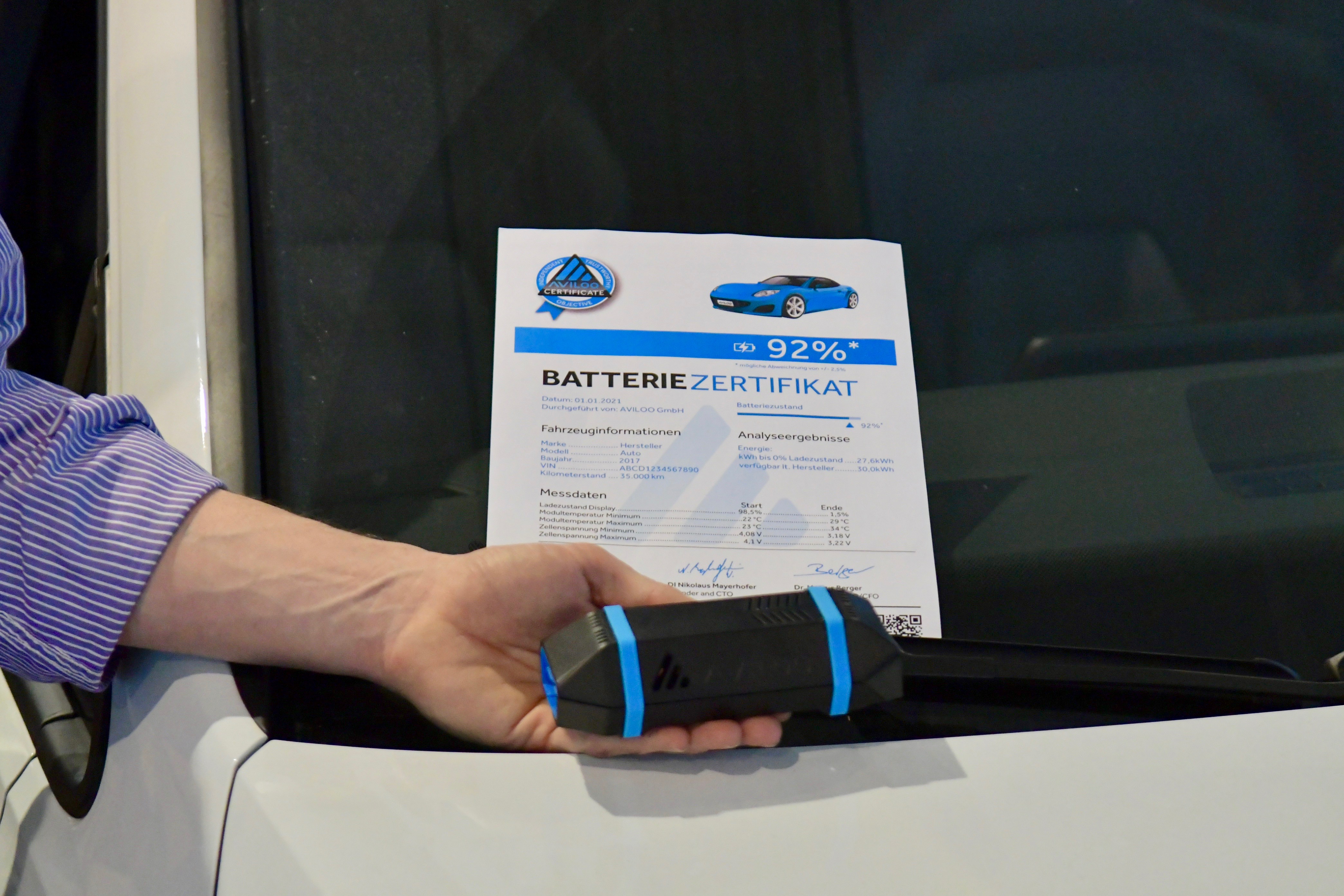 AVILOO 4 YOU berechtigt zum einmaligen Test eines gebrauchten Elektro- oder PlugIn-Hybrid-Fahrzeugs und ist zum Preis von € 180,- inkl. MwSt. erhältlich. Dabei erhält der Kunde die AVILOO Box, die er ganz leicht an der OBD-Schnittstelle anschließen kann. Über die AVILOO Testapp startet er die durchzuführende Batteriediagnose. Nach Abschluss der Testfahrt erhält er für das getestete Fahrzeug das AVILOO Zertifikat mit wertvollen Infos zum tatsächlichen Gesundheitszustand der Antriebsbatterie.
