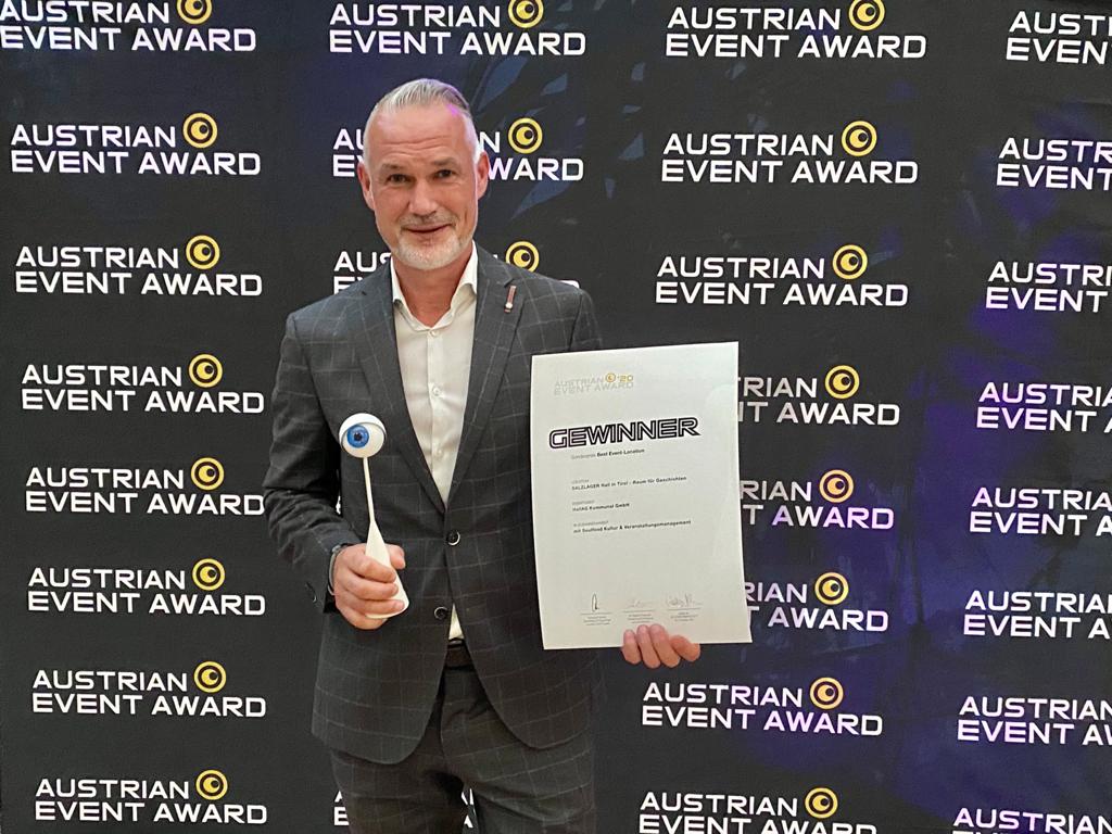 Der Austrian Event Award wird seit rund 25 Jahren an Agenturen und Unternehmen verliehen, um die Leistungen der Branche zu würdigen. Heuer wurde er in 15 Kategorien vergeben. Den Sonderpreis in der Kategorie „Best Event-Location“ erhielt das Salzlager für seine räumliche Flexibilität, die Ausstattung, das Umweltbewusstsein und die Außergewöhnlichkeit.