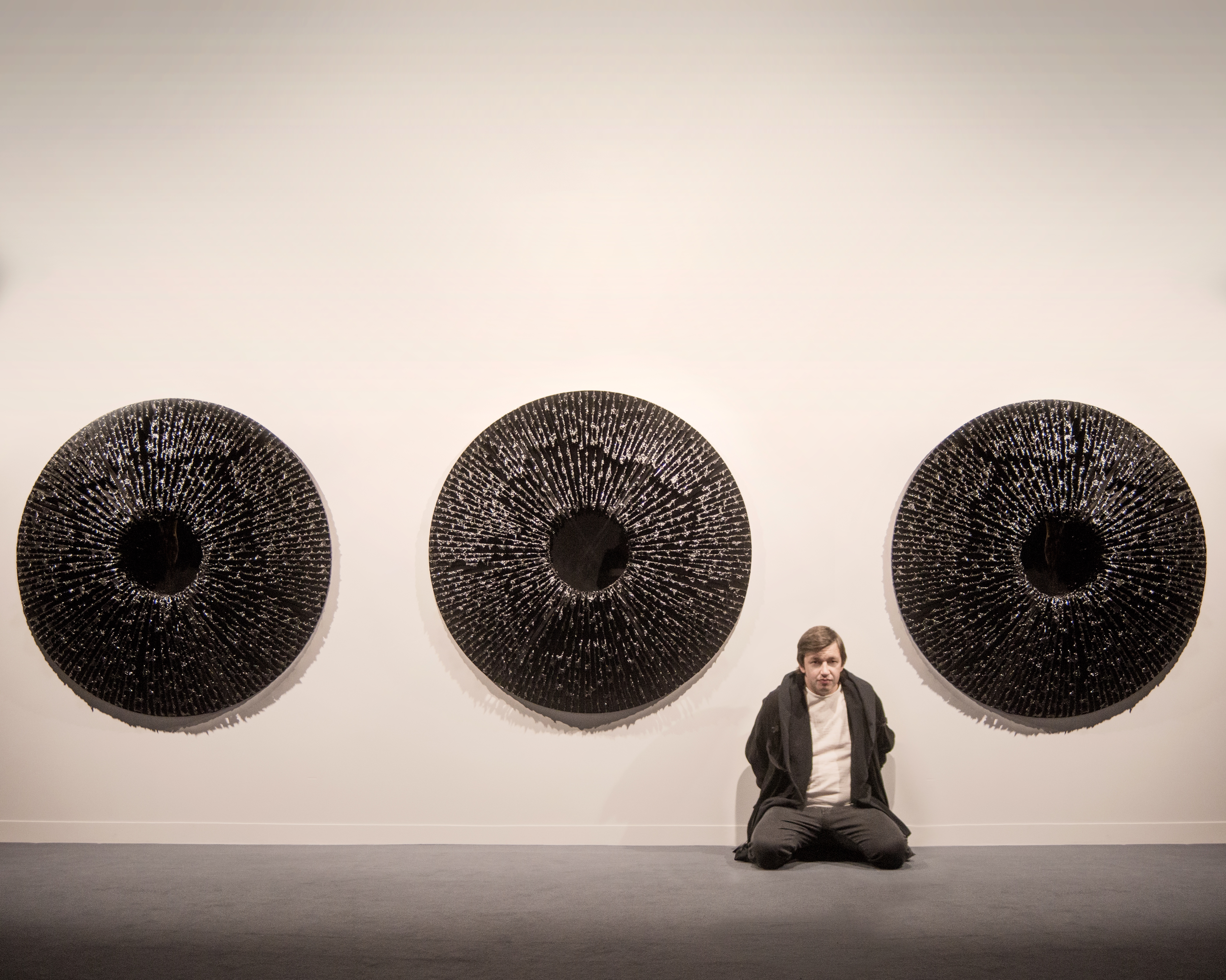 Die Skulpturen, die im Bank Austria Kunstforum zu sehen sind, beeindrucken nicht nur durch ihre Größe, sondern vor allem auch durch ihre Vielschichtigkeit: Der Durchmesser, die Struktur und alle Lamellen werden auf Basis von Koordinaten, chemischen Formeln und Zeitangaben errechnet und dann gegossen. Diese mathematische Präzision wird vom Künstler in weiterer Folge beim Bemalen mit impulsiven, emotionalen Gesten unterbrochen. Klyukin arbeitet mit Acrylfarben, meistens gesprayt, aber oft auch direkt aus der Tube mit bloßen Händen.