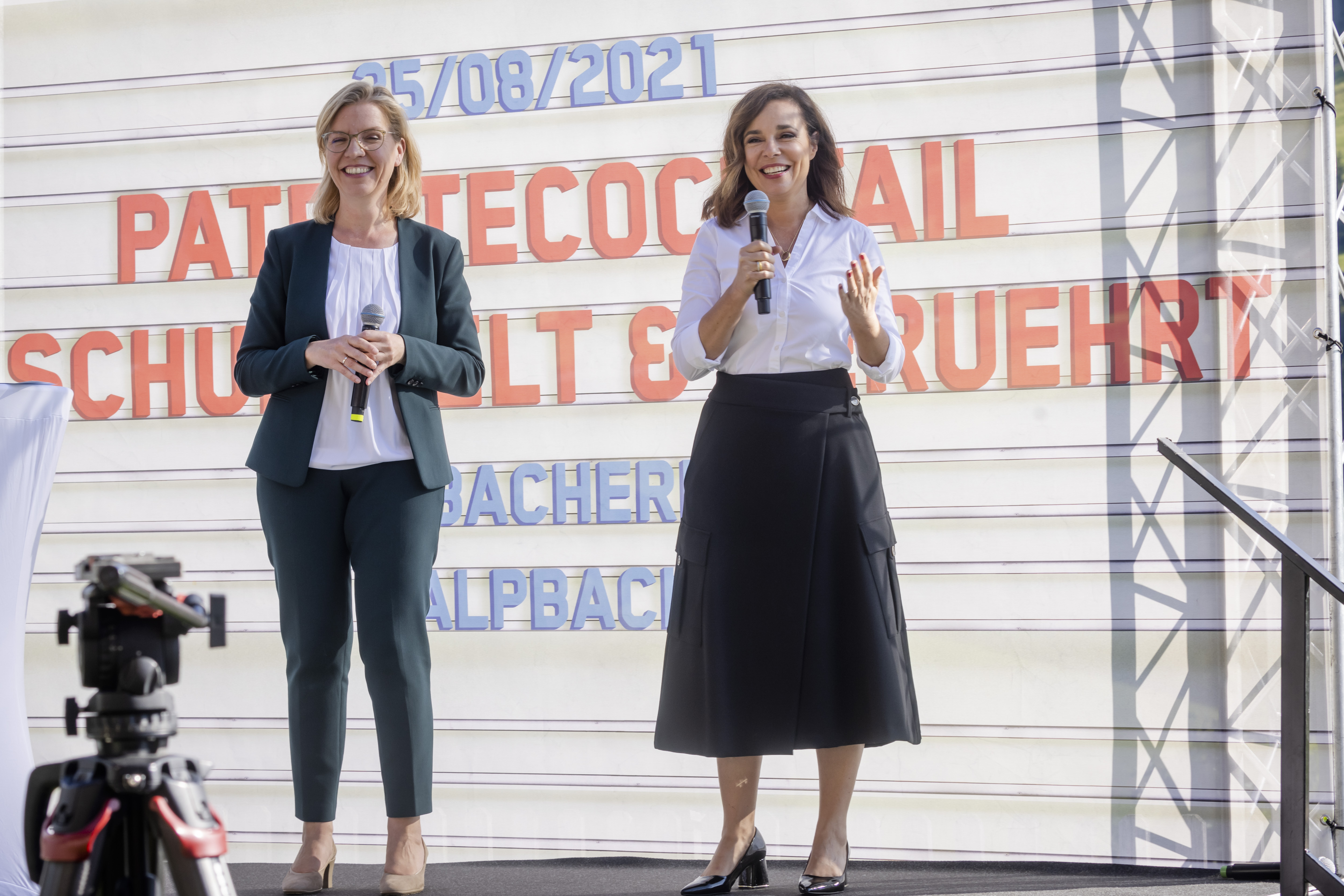 Klimaschutzministerin Leonore Gewessler und Patentamtspräsidentin Mariana Karepova luden zum inspirierenden Technologie-Talk in den Garten des Alpbacherhofs