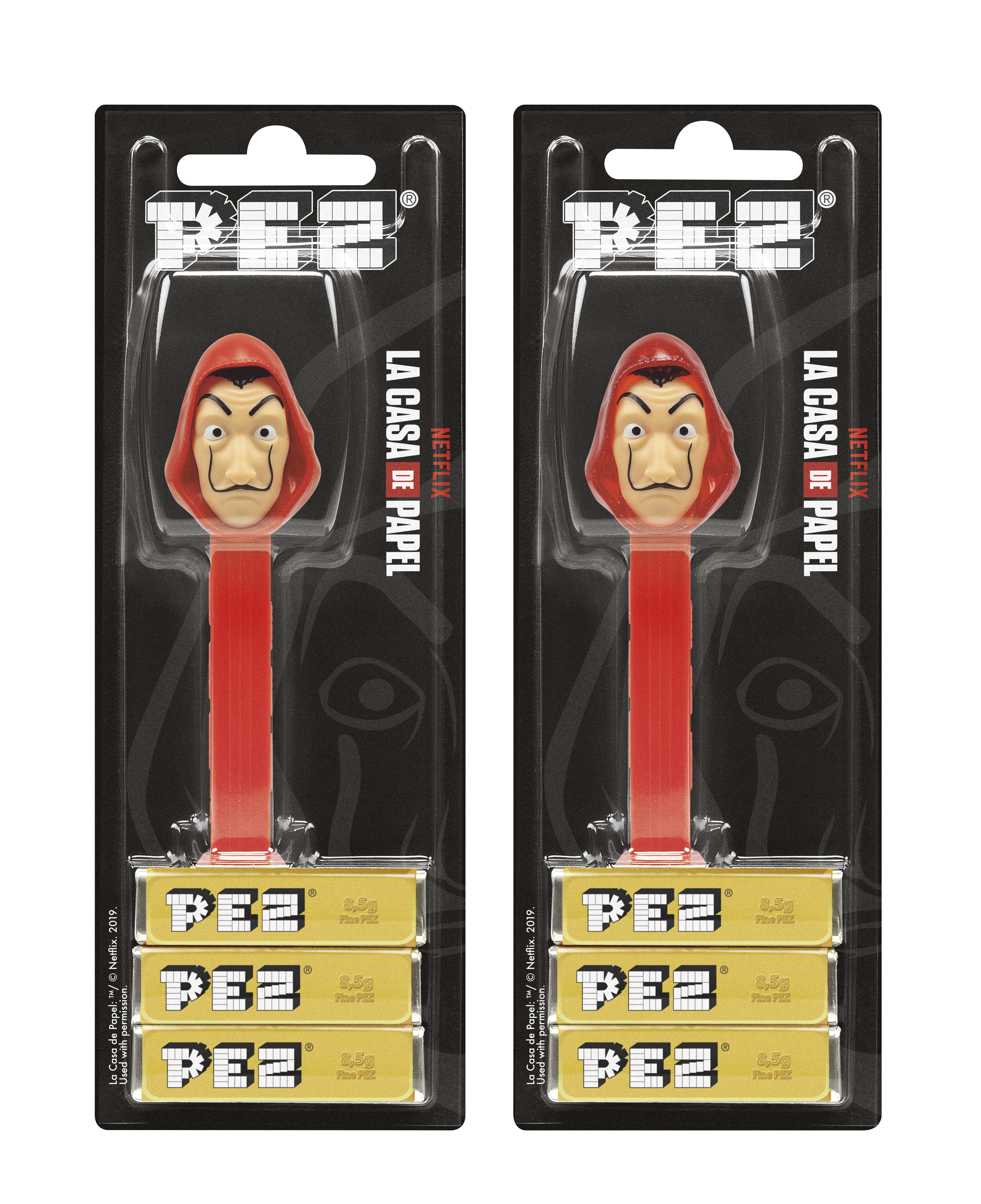 Die Panzerknacker-Story Haus des Geldes geht in die fünfte Runde. Auch PEZ hat der Hype um die spanische Serie erfasst: Pünktlich zum Auftakt der finalen Staffel, sind ab morgen, 3. September, PEZ-Spender mit der ikonischen Dali-Maske erhältlich. Insbesondere für Sammler wird es auch eine Variante mit transparenter Kapuze geben. Zur Serie passend, erinnern die PEZ Bonbons an Goldbarren – wow!