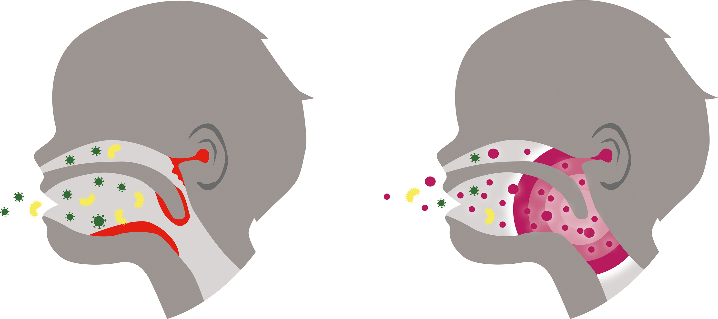 Mögliche Folge: Es entsteht ein Ungleichgewicht, eine sogenannte Dysbiose, die dazu führt, dass unser orales Mikrobiom seine Aufgaben in der Immunabwehr nicht mehr ausreichend erfüllen kann. Schädliche Keime und speziell Viren können sich so in Mund, Nase, Rachen und Ohren vermehren und sogar über den gesamten Körper ausbreiten. Entzündungsreaktionen oder grippale Infekte sind unangenehme Folgen. Dazu gehören auch die speziell unter Kindern besonders häufigen und äußerst schmerzhaften Mandel- und Mittelohrentzündungen.