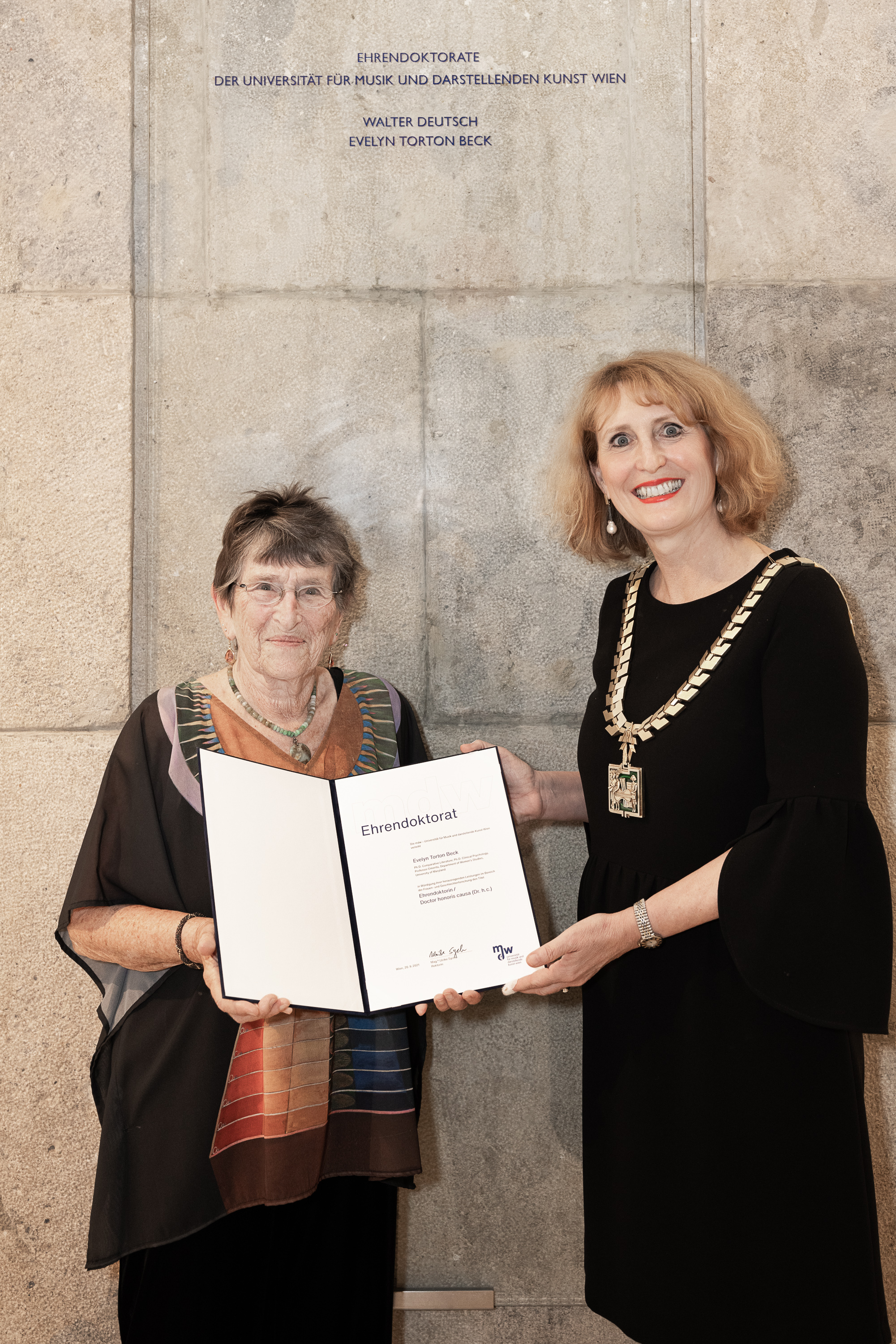 Die mdw – Universität für Musik und darstellende Kunst Wien hat am 20.09.2021 das Ehrendoktorat an Evelyn Torton Beck, Pionierin der Women‘s und Gender Studies, verliehen.