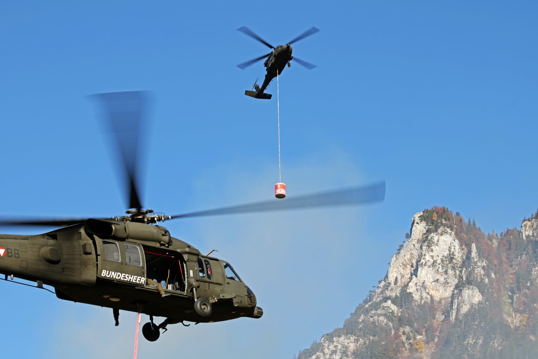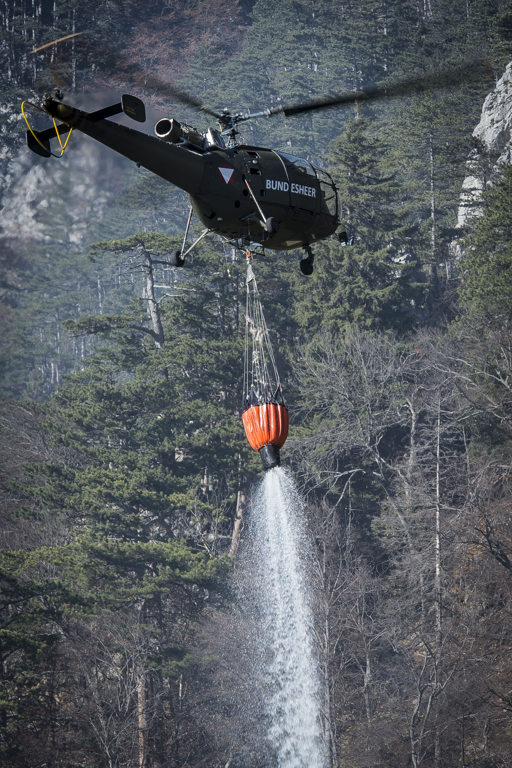 Seit 25. Oktober waren regelmäßig zwei Black Hawks, zwei Augusta Bell 212, zwei Alouette 3 sowie seit vergangenem Montag die Pilatus PC-6 eingesetzt. Das seit Anfang der Woche eingesetzte Flächenflugzeug mit Wärmbildkamera, unterstützte die Einsatzkräfte zusätzlich mit Luftbildern, um die Glutnester zielgenau feststellen zu können. Gemeinsam mit Hubschraubern des Innenministeriums und Unterstützung aus der Slowakei, aus Italien und der deutschen Luftwaffe waren die Luftstreitkräfte  des Bundesheeres gegen den Waldbrand im Dauereinsatz.