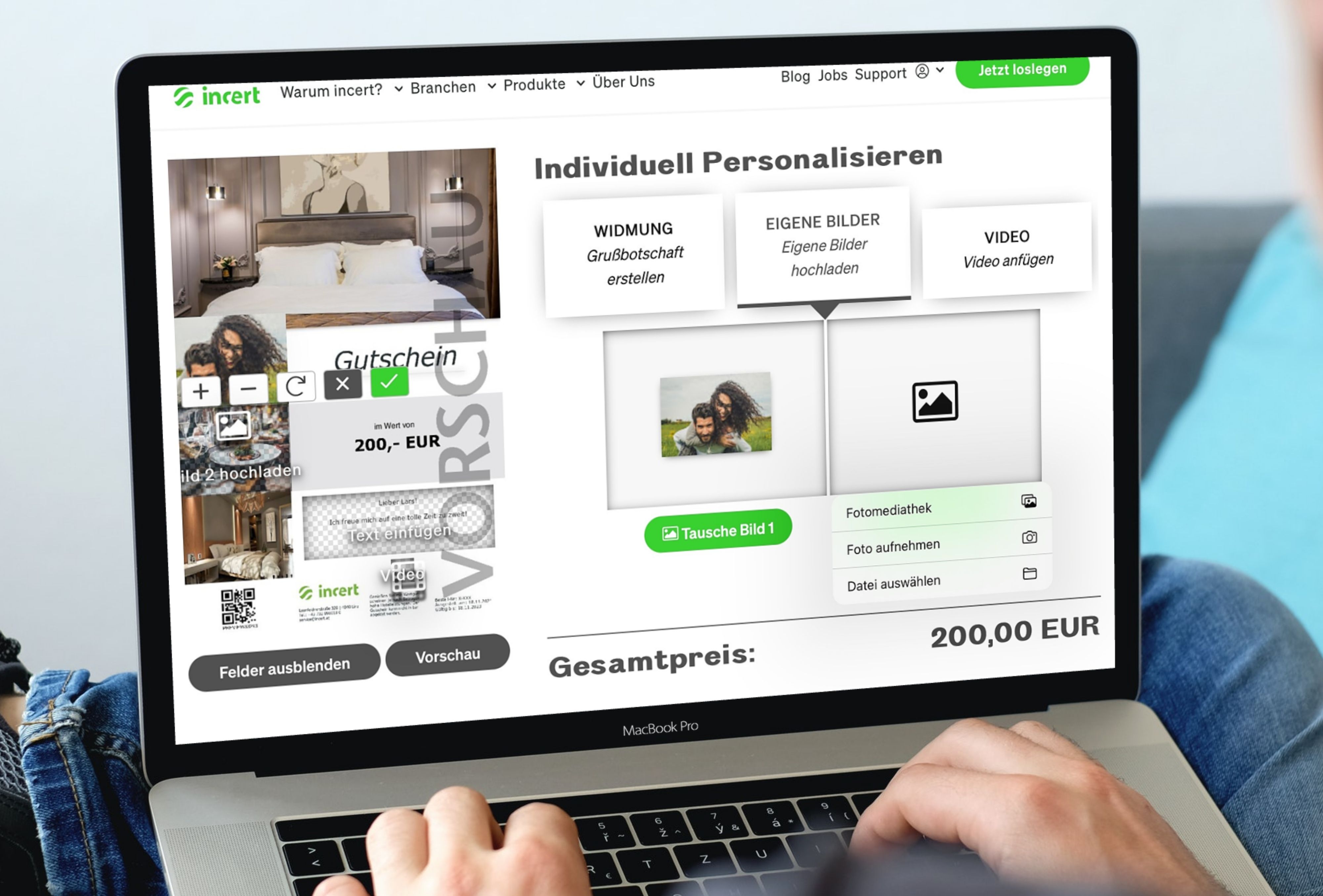 Ein Bild sagt mehr als 1000 Worte – das gilt auch für die Gestaltung von Gutscheinen. Mit der „Bild- & Videopersonalisierung“ bietet incert Gutscheinkäufern die Möglichkeit persönliche Bilder oder Videogrußbotschaften am Gutschein zu platzieren.