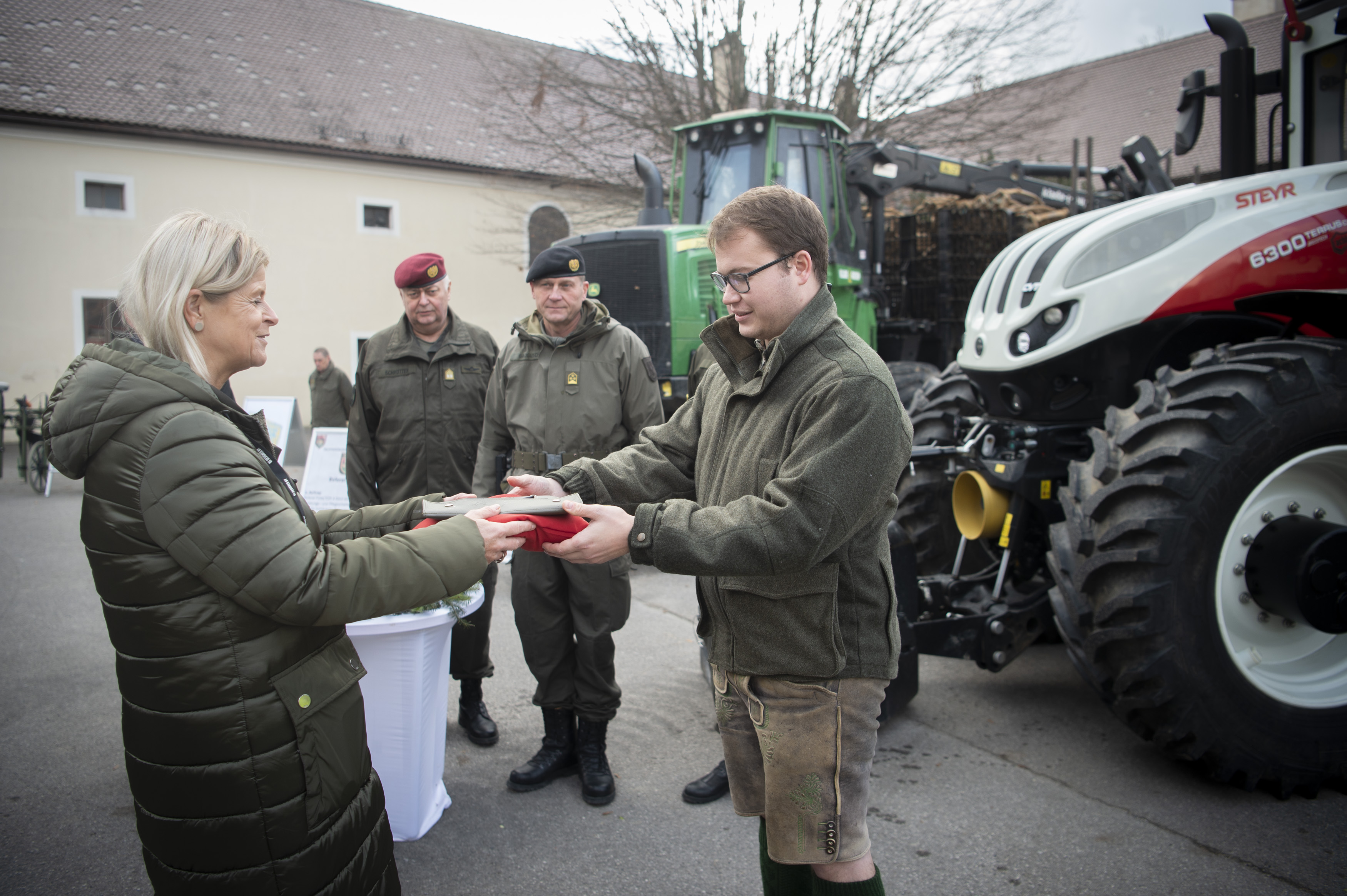 Verteidigungsministerin Klaudia Tanner übergibt ersten splittergeschützten Traktor