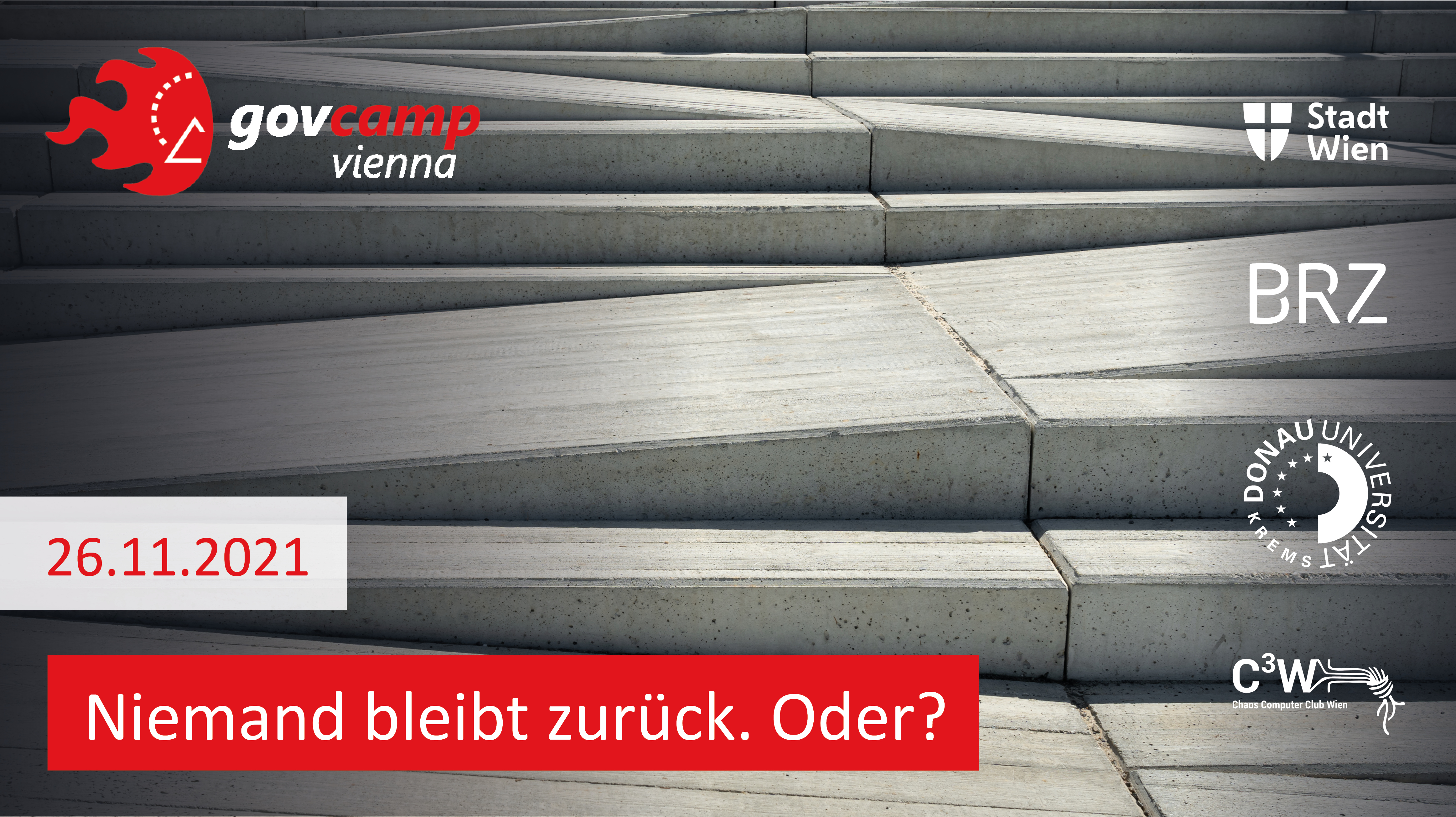 Unter dem Motto „Niemand bleibt zurück - oder“ veranstalteten die Stadt Wien, das Bundesrechenzentrum, die Donau-Universität Krems und der Chaos Computer Club am 26. November gemeinsam das zwölfte govcamp vienna. Interessierte aus der Zivilgesellschaft sowie Vertreter/innen aus Verwaltung, Politik, Wissenschaft und Wirtschaft nahmen an der Barcamp-Veranstaltung teil. Auf Grund der Corona-Krise wurde das govcamp vienna auch 2021 wieder komplett im virtuellen Raum abgehalten. Alle Sessions wurden von den Teilnehmerinnen und Teilnehmern selbst vorgeschlagen und moderiert.