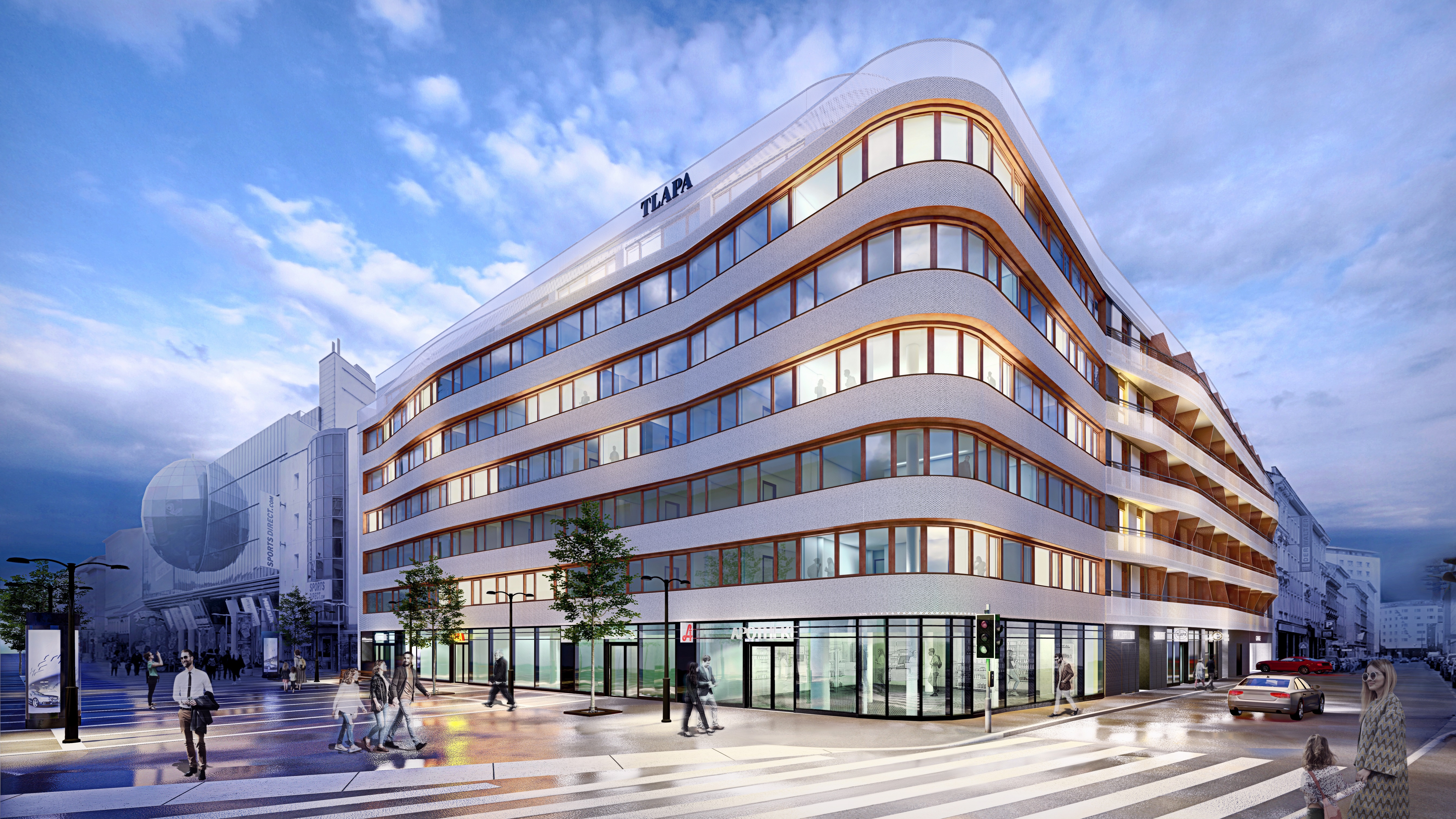 Auf dem Standort des geschichtsträchtigen ehemaligen Modehauses Tlapa in der Favoritenstraße 73-75 wird ab sofort wieder gebaut. Nach dem bereits erfolgten Abbruch entsteht dort ein neues Groß-Projekt mit 20.000 m2. Rund 6.800 m2 werden davon künftig als Büroflächen, 5.000 m2 als Serviced Apartments und 2.000 m2 als Retailflächen genutzt. Die neu errichtete Tiefgarage mit 5.300 m2 wird zusätzliche Parkmöglichkeiten im Grätzl schaffen. In unmittelbarer Nähe zum Hauptbahnhof, auf dem Grund des ehemaligen Tlapa-Gebäudes, entsteht somit ein neues Bau-Highlight in Wien-Favoriten.