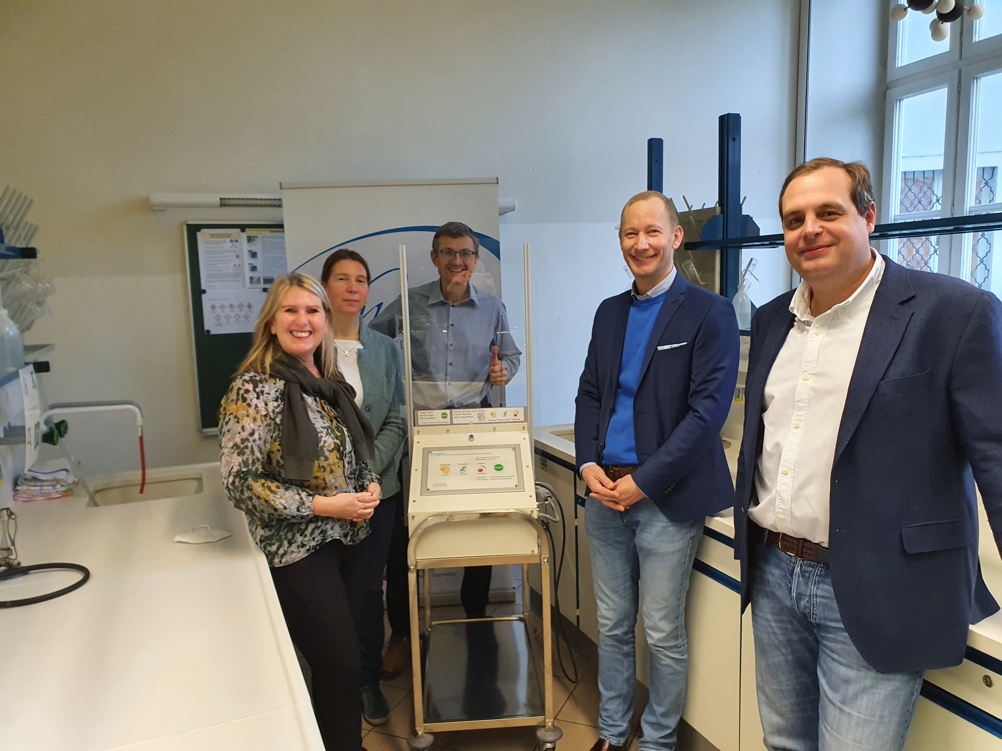 Die Danube Private University Krems (DPU) unterstützte im Rahmen eines vom Land Niederösterreich geförderten Projektes die Firma Genius5, Kottingbrunn, bei der Entwicklung eines Geruchsautomaten zur Identifikation von Corona-Infektionen. Der Prototyp, dessen Einkaufswert bei rund EUR 10.000 liegt, wurde seitens der DPU nun dem Mary Ward ORG Krems geschenkt und übergeben, sodass dieser im naturwissenschaftlichen Unterricht verwendet werden kann.