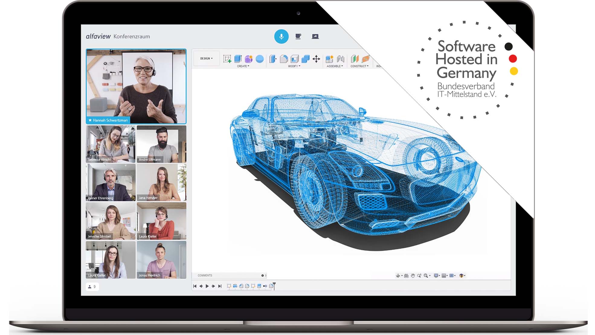 Der Bundesverband IT-Mittelstand e.V. (BITMi) bestätigt der Videokonferenzsoftware alfaview® mit der Vergabe des Gütesiegels "Software Hosted in Germany" deutsche Qualitätsstandards, beste Verfügbarkeit, Zukunftssicherheit und Vertrauenswürdigkeit in puncto Datenschutz, insbesondere hinsichtlich sensibler Unternehmensdaten im Internet.