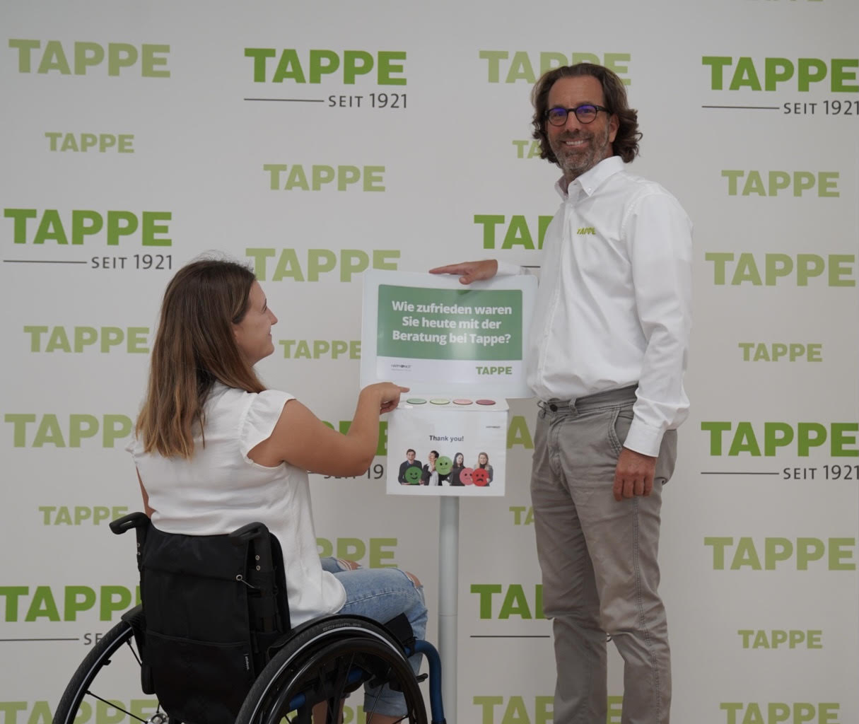 Nach dieser Maxime nutzt Tappe in seinen Filialen bereits seit fünf Jahren das Feedbacktool der finnischen Firma HappyOrNot zur Kundenbefragung. Eines dieser Smiley-Terminals steht jetzt auch im neuen Tappe-Technikzentrum. Es erfasst die Kundenzufriedenheit schnell und anonym im Vorbeigehen, per Fingertipp auf einen von fünf Smiley-Buttons. Der österreichische Anbieter der HappyOrNot-Smiley-Terminals, die ScanLang GmbH, hat seit 2016 bereits insgesamt 55.000 Feedbacks in insgesamt neun Tappe-Filialen gezählt und ausgewertet. „Das Ergebnis für die Tappe-Filialen ist im Branchenvergleich überdurchschnittlich gut“, berichtet Mag. Franz Michael Bauer, Geschäftsführender Gesellschafter von ScanLang. „Der Kundenzufriedenheitsindex liegt bei 96 von 100 Punkten.“
