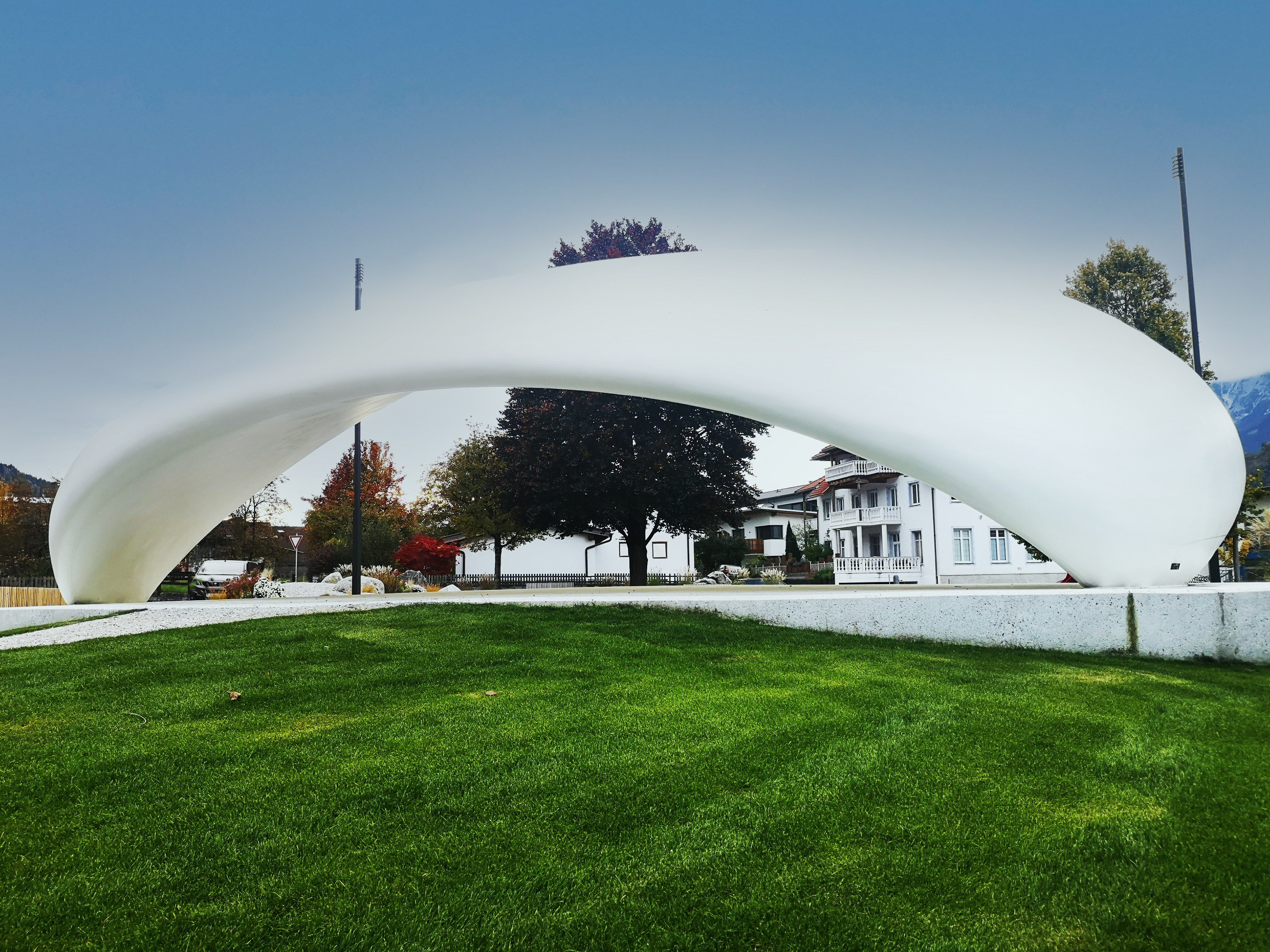Für die Tiroler Gemeinde Weer entwickelten die Spezialisten von CUBIC aus Jenbach einen einzigartigen futuristischen Platz der Begegnung mit organischem Design und Polyurea-Skinning-Technik.