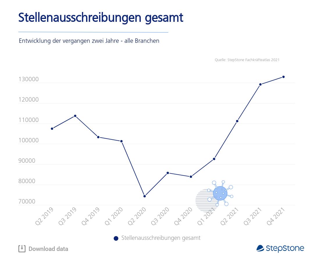 Das Ergebnis: Im Vorjahr waren rund 466.000 Jobs ausgeschrieben; das entspricht einem Plus von rund 35 % gegenüber dem Jahr 2020. „Der Jobmarkt boomt