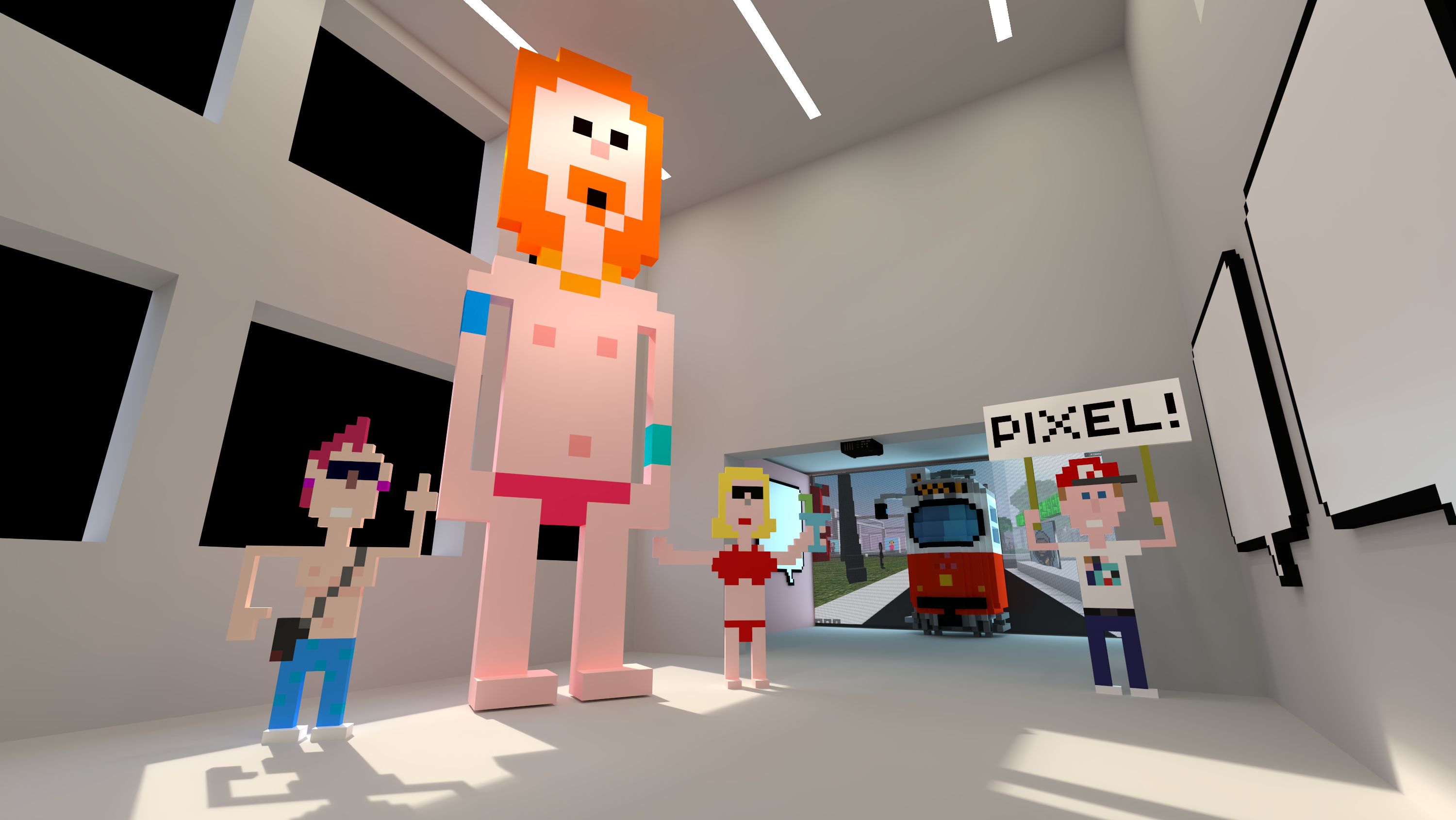 Die CryptoWiener erobern das Metaverse im Linzer OK. Mit ihren realen, Pixelarbeiten übersetzen sie die digitale Welt in den analogen Ausstellungsraum und schaffen ein mehrdimensionales Erlebnis – ein permanenter Wechsel zwischen digitaler und analoger Welt. Das eigene Handy wird dabei zum Portal und führt durch die bunte virtuelle Pixelwelt der CryptoWiener: vom Kaffeehaus, mit Mozart am Klavier, gelangt man zum Würstelstand oder auf das Fußballfeld und trifft beim „Meet and Greet“ auf ikonische österreichische Persönlichkeiten.
