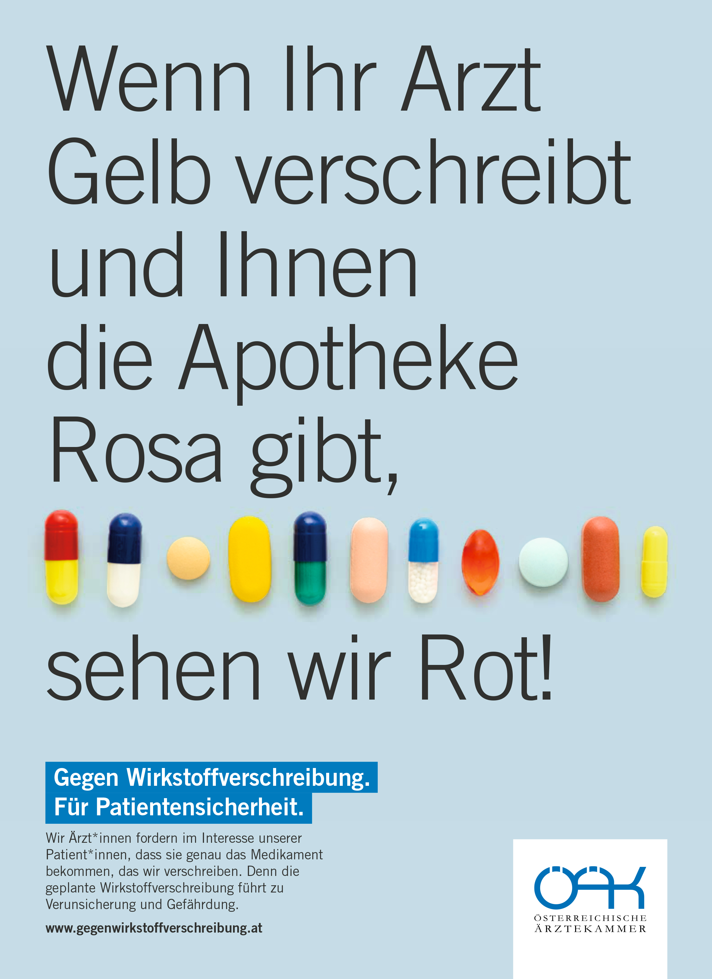 „Diskussionen über Aut-idem oder Wirkstoffverschreibung begleiten uns nun schon längere Zeit, doch dass der aktuelle Gesundheitsminister hier eine entsprechende Beschlussfassung schon vorbereiten lässt und sich eine Änderung im Arzneimittelgesetz für Arzneimittelsubstitutionen, also die Herausgabe äquivalenter Medikamente auf Apothekenebene, vorstellen kann, das ist eine neue Dimension der Patientengefährdung. Daher sieht sich die Bundeskurie niedergelassene Ärzte in der Pflicht, die Öffentlichkeit auf diese gefährliche Entwicklung aufmerksam zu machen“, sagte Steinhart. Ab Samstag werde daher eine Aufklärungskampagne starten, um die Öffentlichkeit vor der drohenden Gefährdung zu warnen. „In den größten österreichischen Tageszeitungen, Infoscreens in den größten österreichischen Städten sowie auf den großen Internetplattformen werden wir unsere Botschaft verbreiten, zudem wird die Homepage www.gegenwirkstoffverschreibung.at zur Verfügung stehen, um auf die vielen Probleme hinzuweisen, die die Wirkstoffverschreibung mit sich bringen würde. Zudem appellieren wir an unsere Patientinnen und Patienten, dass sie in der Apotheke drauf bestehen sollen, nur das Präparat zu erhalten, das ihre Ärztin oder ihr Arzt verschrieben hat. Das sind wir nicht nur unseren Kolleginnen und Kollegen, sondern auch der Sicherheit unserer Patientinnen und Patienten schuldig!“, unterstrich Steinhart.