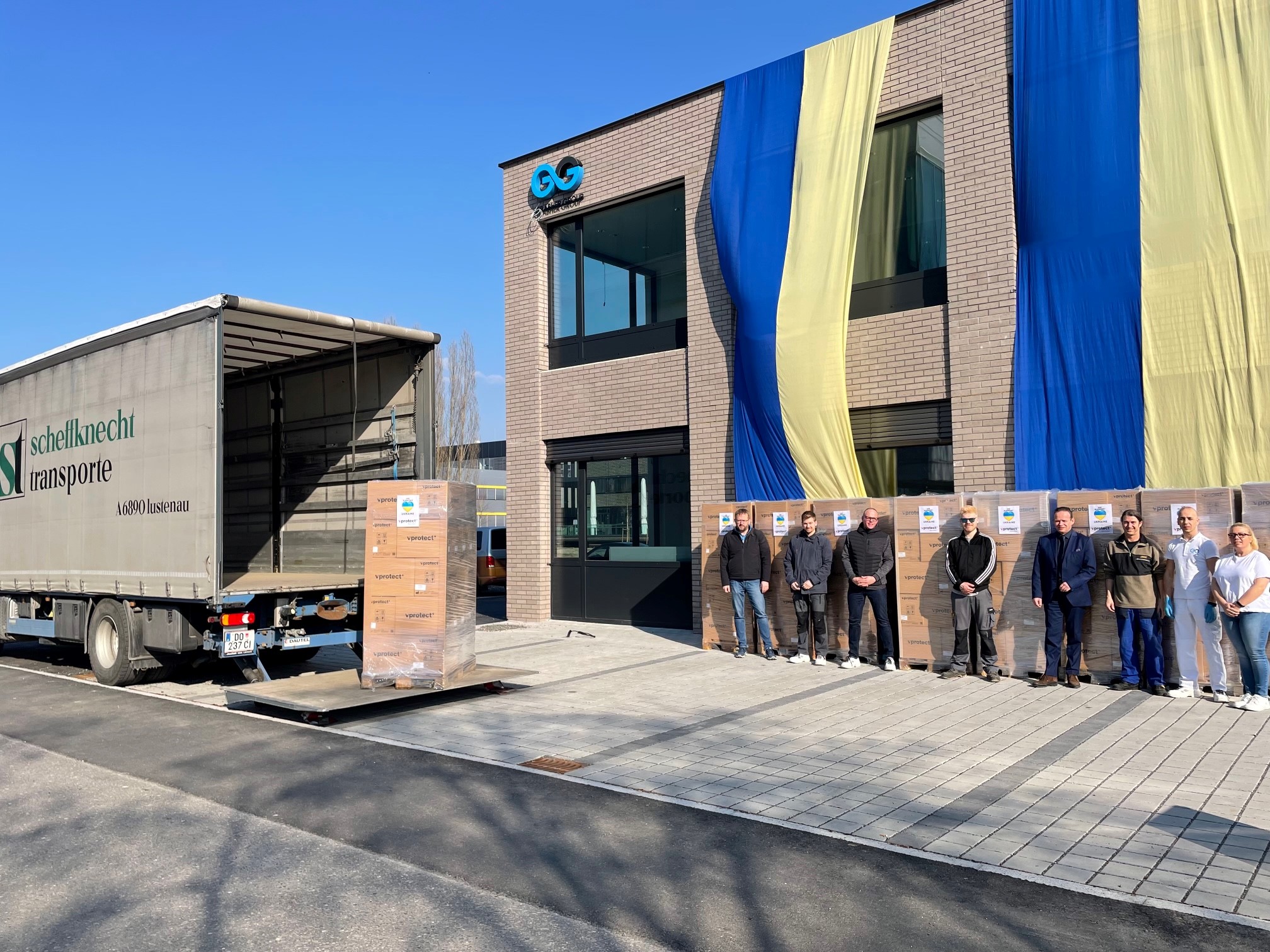 Durch eine Initiative des Textilunternehmens Grabher Group GmbH (Virenfilter-Hersteller) und des Startups Vprotect GmbH (Schutzmasken-Produzent) konnten weitere 135.000 benötigte Spenden-Schutzmasken an das Bundesministerium für Inneres für die Ukraine-Hilfe geliefert werden.