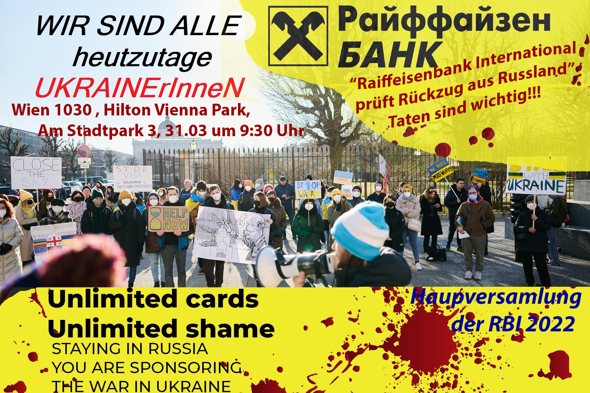 Demo Raiffeisen weg aus RUSSIA. Respekt zur Ukraine 31.03, Am Stadtpark 3