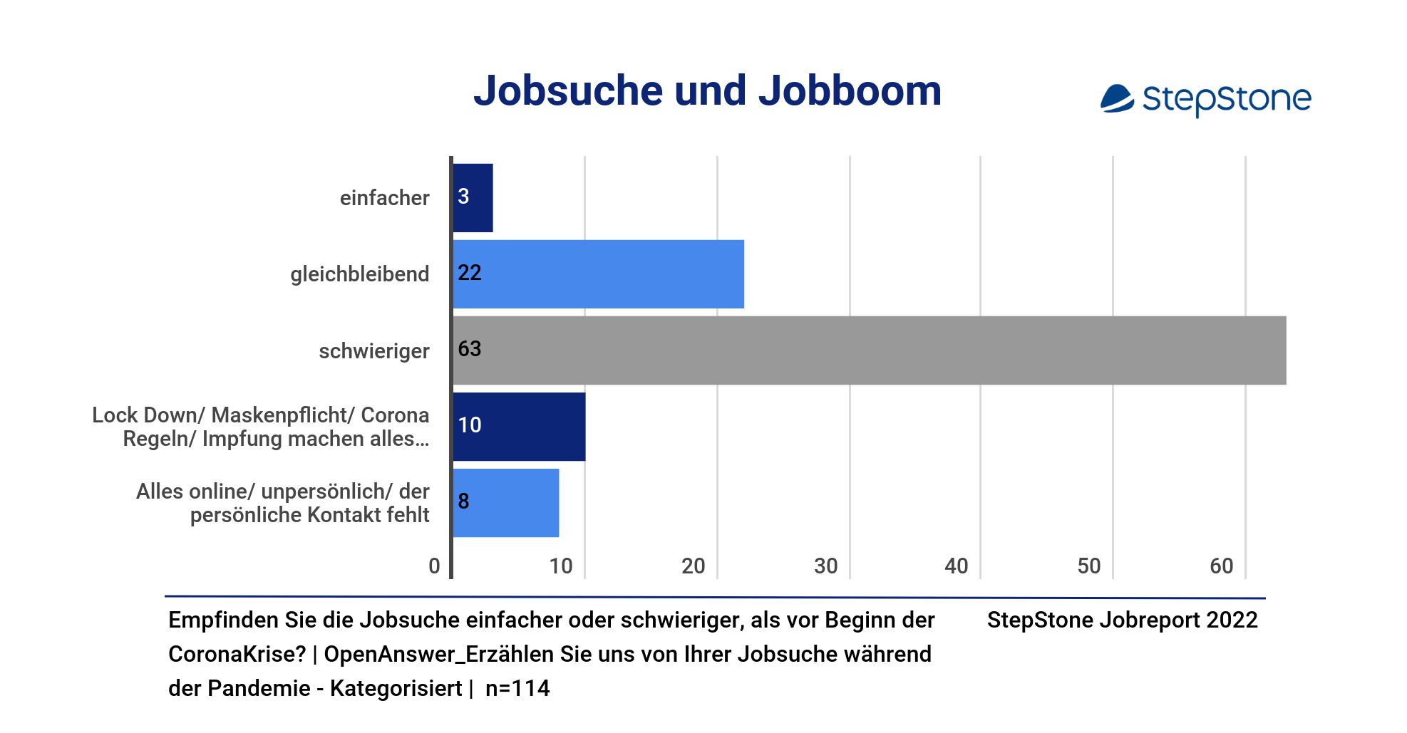 - 63 % sagen, es sei schwieriger als vor der Pandemie und ihre Chancen stünden im Moment eher oder sehr schlecht