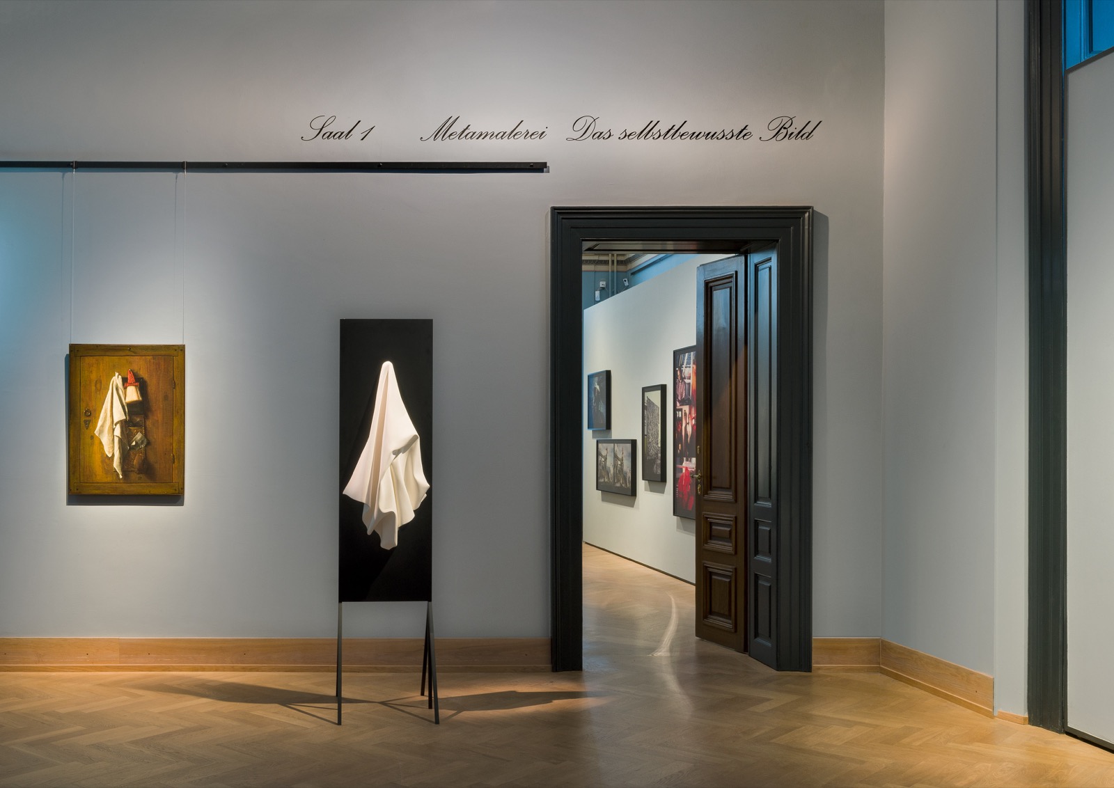 Die Ausstellung Das entwendete Meisterwerk. Bilder als Zeitmaschinen unternimmt einen Parcours auf Umwegen und Abzweigungen durch die Kunstgeschichte seit dem 15. Jahrhundert bis heute, wie sie sich in den Kunstsammlungen der Akademie der bildenden Künste abbildet. Dabei beschäftigt sie sich mit den Bildtheorien des 17. Jahrhunderts, wie jener von Samuel van Hoogstraten, genauso wie mit medientheoretischen Überlegungen der Gegenwart, die eine Folge von technologischem Wandel und dessen Niederschlag in der Generierung von Bildern sind. Der Titel der Ausstellung verdankt sich einer Engführung der Detektivgeschichte The Purloined Letter von Edgar Allan Poe über einen entwendeten Brief, der nicht gesehen wird, weil er so offensichtlich daliegt, mit der Novelle Das unbekannte Meisterwerk (Le Chef-d’oeuvre inconnu) von Honoré de Balzac, in der es um die Imagination und die Grenzen der Darstellbarkeit geht: „Der Auftrag der Kunst besteht nicht darin, die Natur nachzuahmen, sondern sie auszudrücken!“, sagt der alte Meister Frenhofer in der Novelle. Zudem kommen in der Novelle Protagonisten wie Peter Paul Rubens, Nicolas Poussin oder François Porbus vor, die allesamt in der Sammlung der Gemäldegalerie eine Rolle spielen. In beiden Geschichten geht es, wenn auch gegenläufig, um die Fragestellungen von Repräsentation, Aneignung, Mimesis und (optischer) Täuschung sowie um jene nach der Definition von „Meisterschaft“ in Bezug auf die Erfassung von Wirklichkeit.