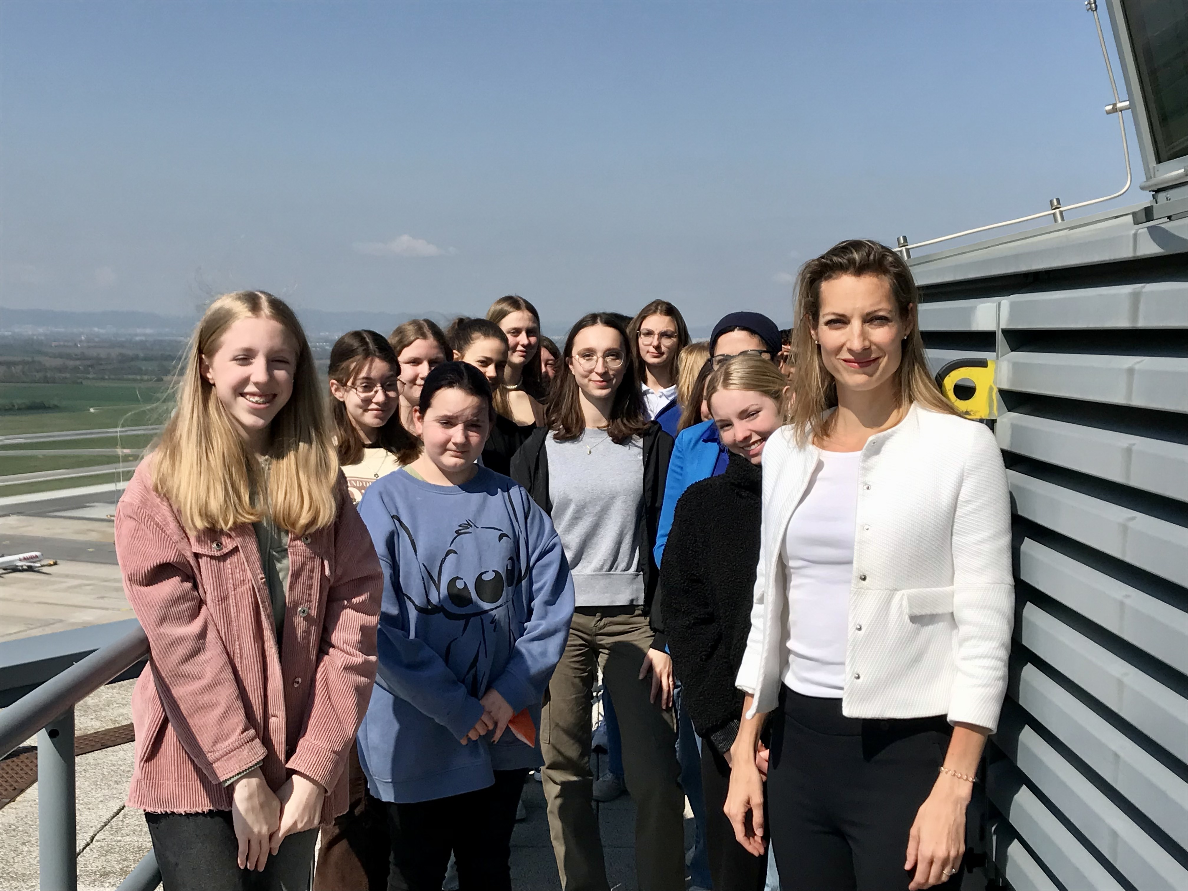 Austro Control Geschäftsführerin Valerie Hackl nahm sich persönlich Zeit, um den Mädchen das Unternehmen Austro Control vorzustellen und Fragen zu beantworten. Austro Control möchte den Frauenanteil in der Flugsicherung in den kommenden Jahren deutlich erhöhen.