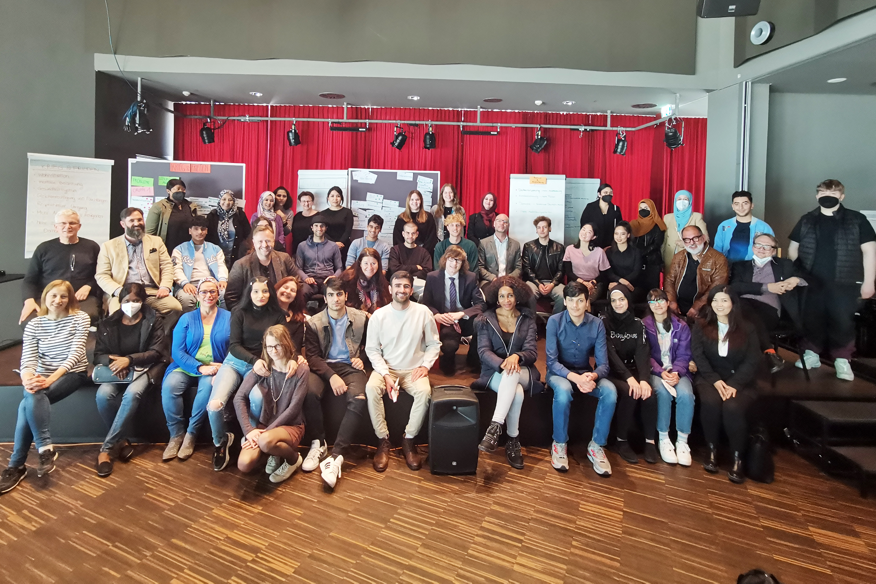 Die Jugendlichen und jungen Erwachsenen sind Teilnehmer*innen von Pflichtschulabschlusskursen und Brückenkursen im Rahmen der Initiative Erwachsenenbildung an den Wiener Volkshochschulen sowie Studierende der Publizistik. Zur Vorbereitung auf das Event wurde ein inhaltlicher Schwerpunkt auf die Europäische Union gelegt. Dabei stand vor allem im Fokus, was die jungen Menschen selbst interessiert, wo sie ihr Leben von der EU berührt sehen oder wo sie Handlungsbedarf identifizieren und sich gerne einbringen würden. Dass die Jugendlichen dabei den Finger auf die europaweit aktuellsten politischen Fragen legten, zeigen die Ergebnisse der europäischen Bürger*innenforen im Rahmen der Konferenz zur Zukunft Europas. Ihre Empfehlungen decken sich großteils mit den von den jungen Teilnehmer*innen gewählten Fragen: Krieg und Frieden, Nachhaltigkeit, Beruf und Ausbildung und Gesundheit waren die vier großen Leitthemen der vorbereitenden Workshops.