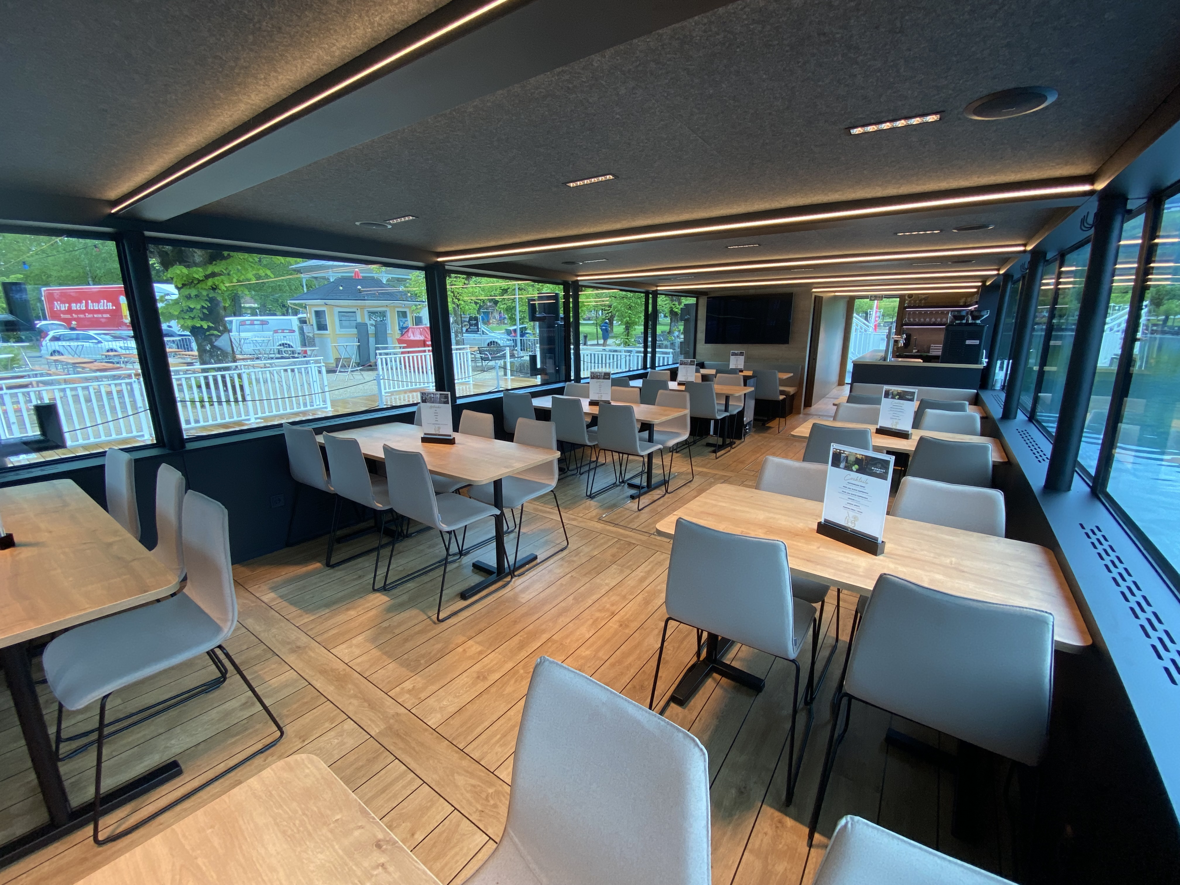 Dann ist Privat-Cruising in exklusiver Yacht-Atmosphäre angesagt. Modernste Soundtechnik, Gastronomie stehen bereit. Die brandneue Schiffsbar und die Crew freuen sich auf die Gäste. Das Catering übernimmt das erstklassige An-Bord-Service des Seecafes Mondsee. Das Plätschern der Wellen gehört dann nur den Chartergästen.