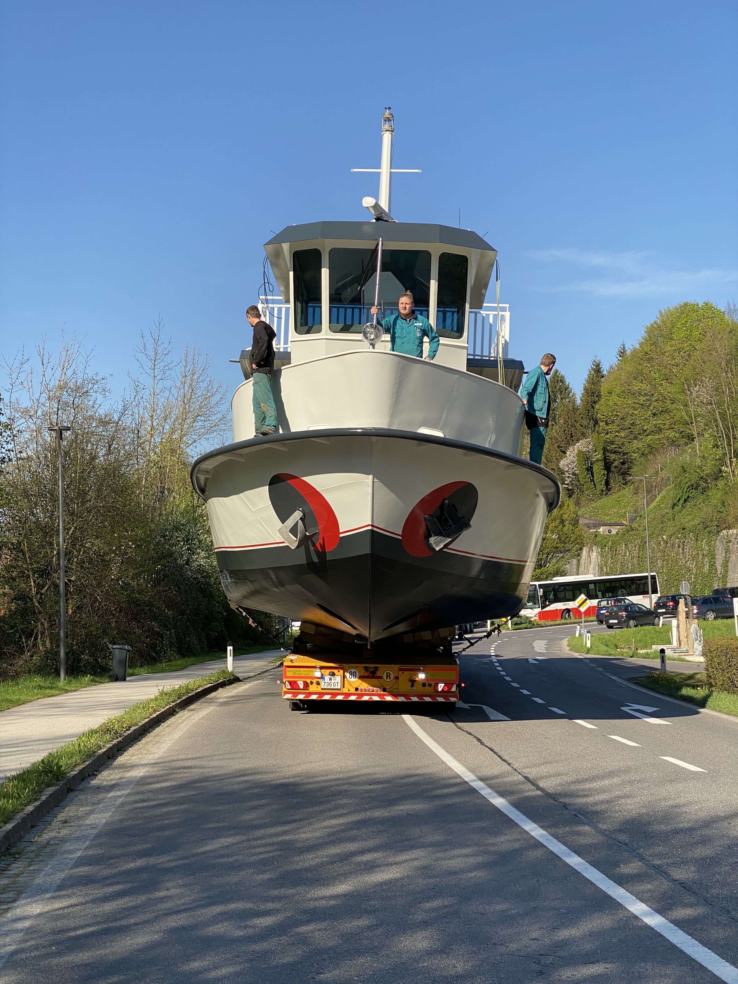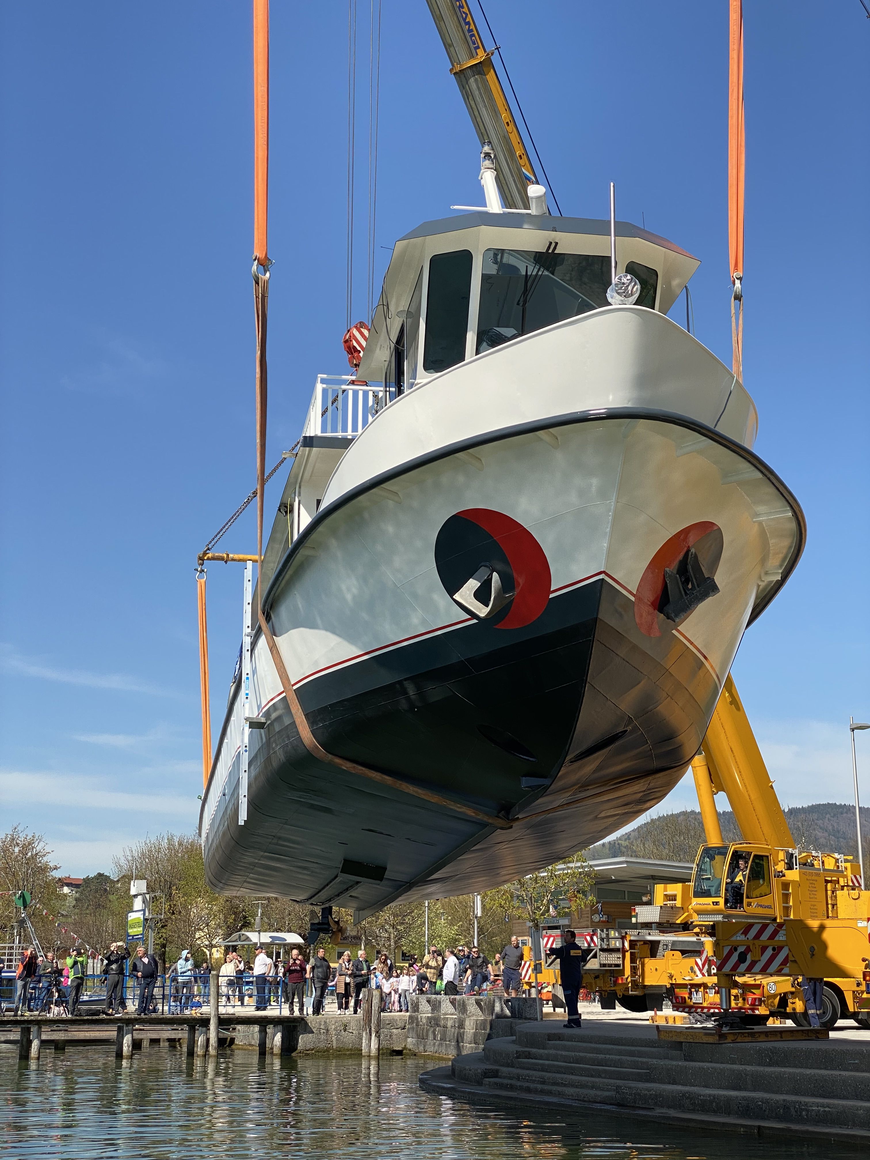 Die Reise bis dahin war keine einfache. Zwei Schwerlastkräne holten im November bei Schneetreiben das damals noch 55 Tonnen schwere Schiff aus dem See. Mehr als 20.000 Arbeitsstunden und spektakuläre Schwertransporte durch den halben Ort waren nötig, damit die Festgäste diesen für die lokale Schifffahrt einzigartigen Event genießen konnten. Nach den Eröffnungsreden der Eigner, der Verantwortlichen der Werft und des Kapitäns Franz Meindl erfolgte die Segnung durch Pfarrer Reinhard Bell und dem offiziellen Durchschneiden des Bandes durch die Familie Hargassner, Geschäftsführer Christoph Buchbauer, dem Mondseer Bürgermeister Josef Wendtner, Landesrat Markus Achleitner, Prokurist der ÖSWAG Werft Harald Böhm und die beiden Kapitäne der Mondseeland Franz Meindl und Karl Kinast.