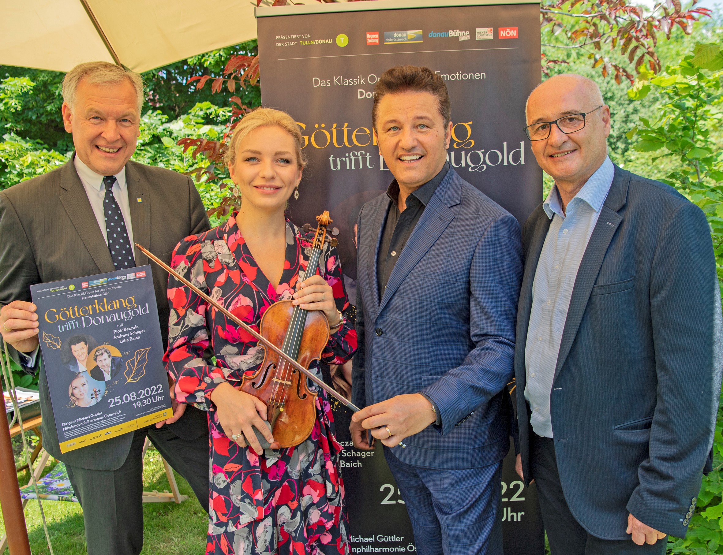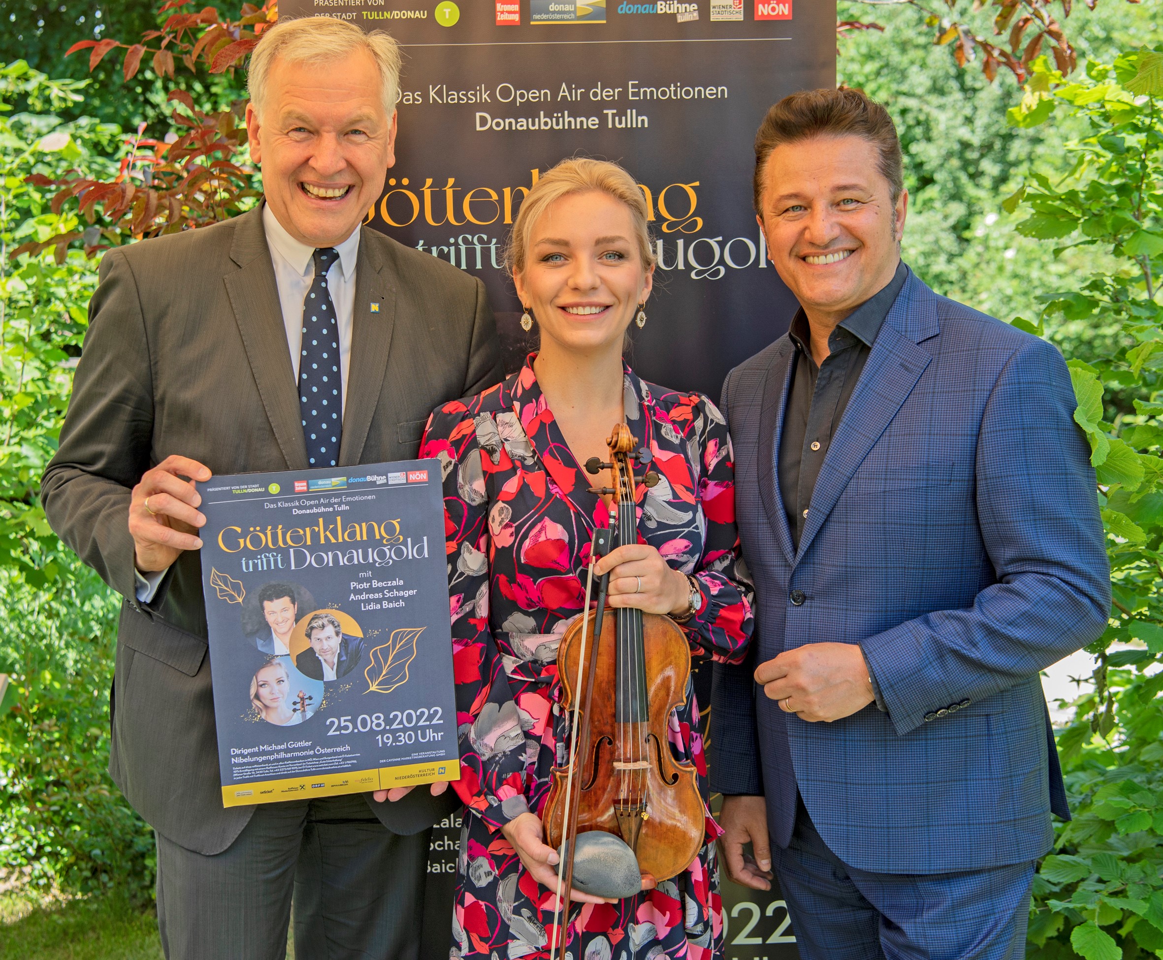 Nach der erfolgreichen Premiere 2021 findet Götterklang trifft Donaugold am 25. August 2022 eine Fortsetzung. Die Weltstars der Klassik, Piotr Beczala, Andreas Schager und Lidia Baich werden für das Klassik-Highlight ein ganz besonderes Programm auf die Donaubühne Tulln bringen. Dieses Programm stellten die Stars höchstpersönlich am 30. Mai auf der Garten Tulln vor – Andreas Schager musste sich leider aufgrund von Krankheit entschuldigen – und zeigten in Anwesenheit von Landesrat Martin Eichtinger dazu noch, dass sie nicht nur auf den Bühnen der Welt zuhause sind, sondern auch hinter dem Grill wahre Meister sind.