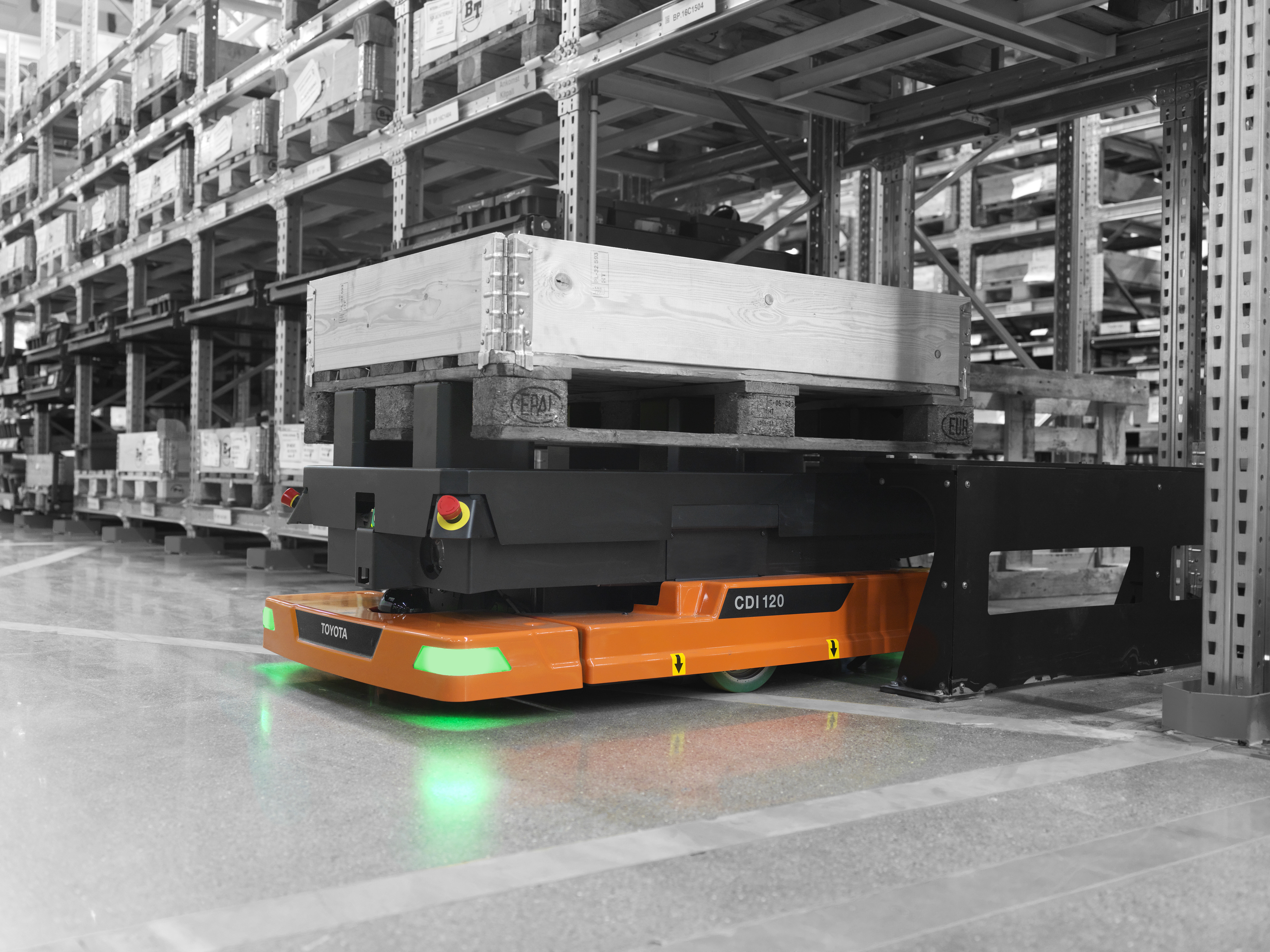 Toyota Material Handling Europe stellt mit dem automatisierten Lastenträger CDI120 seine neueste Entwicklung für Lagerautomatisierung vor. Das fahrerlose Transportsystem ist speziell für den horizontalen Palettentransport geeignet und lässt sich mit den bestehenden Toyota-Autopilot-Geräten und dem T-ONE-Managementsystem zu einer vollständig integrierten Lagerlösung kombinieren.