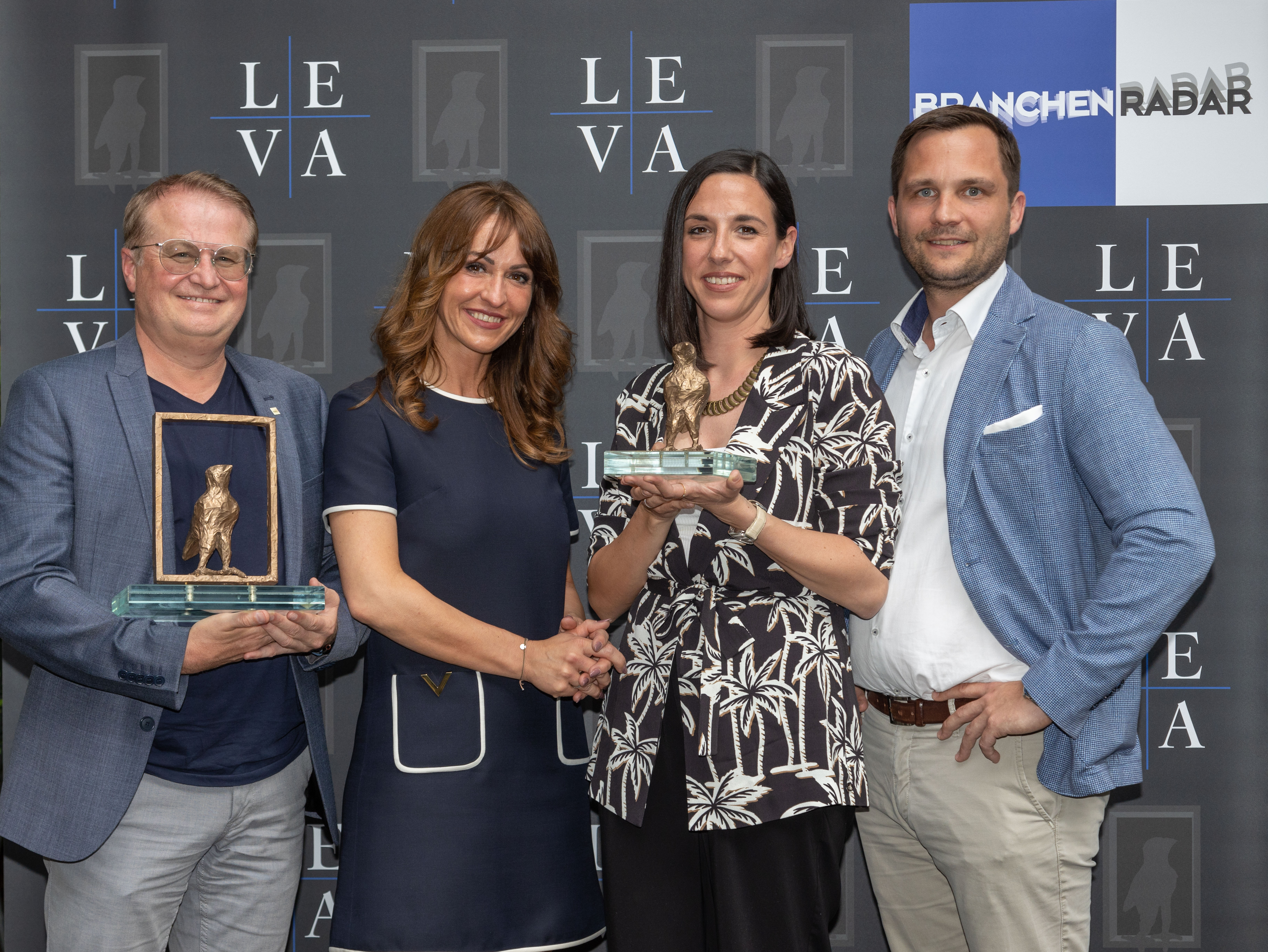 09.06.2022 - Gestern Abend wurden im Grand Sheraton Salzburg die LEVA 2022 vergeben. Der LEVA ist der erste österreichische Preis für die heimische Fensterindustrie. Ausgezeichnet wurden die Bestperformer des Jahres 2021. Den Regionalpreis gewann die ENTHOLZER Fenster und Türen GmbH. Julia Speiser und Sebastian Ganthaler nahmen den Preis stellvertretend für das Unternehmen entgegen. „Die Auszeichnung beweist, dass wir am richtigen Weg sind“, so Geschäftsführer Ganthaler. In der Laudatio würdigte Robert Grieshofer vom Glaserzeuger C. Bergmann Entholzer als „krisenfestes Familienunternehmen in zweiter Generation, das die Übergabe meisterhaft bewerkstelligte“.