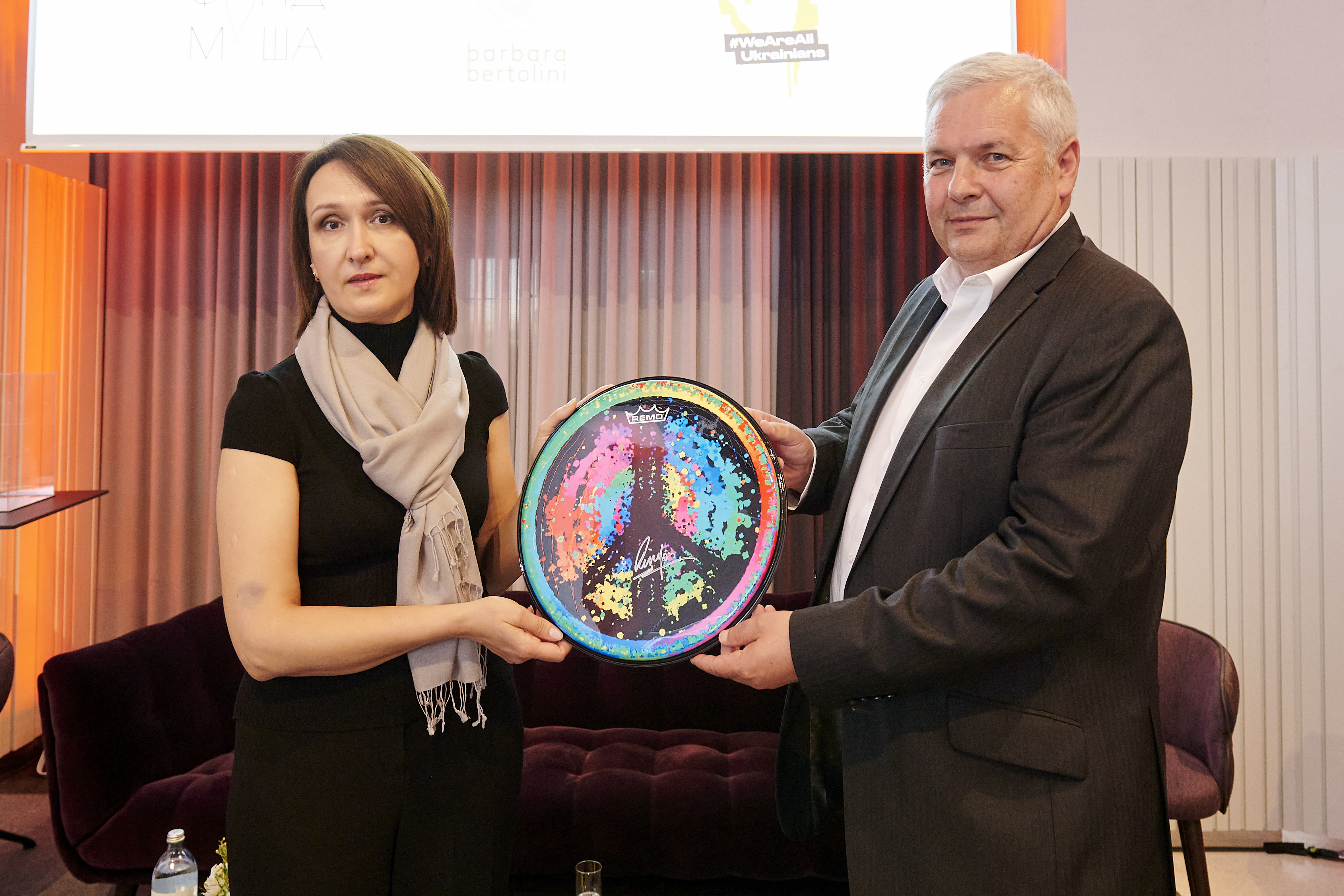 Das vor sieben Jahren von Barbara Bertolini ins Leben gerufene jährliche Gipfeltreffen der Institutionellen Investoren, Politiker und Wirtschaftswissenschaftler eine sichere und auskömmliche Altersvorsorge in Österreich zu schaffen, stand dieses Jahr auch für den guten Zweck ein. Beim Gala-Abend wurden für notleidende Menschen in der Ukraine am 8. Juni, für ein Exponat von Ex-Beatle Schlagzeuger und seit den 1990er Jahren Pop-Art Artist Ringo Starr, das Drum Head PEACE, sign.“ Siebdruck auf Kunststoff, 2011 aus der privaten Kunstsammlung von Barbara Bertolini, für Euro 10.400 sowie für einen #WeAreAllUkrainians-Hoodie von Wladimir Klitschko Euro 1.000 gespendet. Unter der Anwesenheit der Ehrengäste und der Schirmherrin des Spendenabends, ihre Exzellenz, Vlasta Khymynets, die Gattin des Botschafters Vasyl Khmynets, der ukrainischen Botschaft in der Republik Österreich sowie Generalkonsulin Myroslava Zinkevych der ukrainischen Botschaft in der Republik Österreich, Frau Dörte Kruppa, Leiterin Finanzen und Spenden der Wladimir Klitschko-Initiative #WeAreAllUkrainians aus Hamburg, Dompfarrer Toni Faber und dem Leiter der Spendenaktion Handelsrat Florian W. O. Macho, spendeten über 50 Personen und Unternehmen für das PEACE-Drum Head, welches nach diesem Spendenabend, als sogenanntes Wanderexponat für weitere Spendenaktionen im Zeichen des Friedens von Barbara Bertolini eingesetzt wird. Per Videobotschaft waren ebenso mit dabei, Natalia Klitschko, Gattin des Bürgermeisters in Kiew, Vitali Klitschko sowie Maria „Masha“ Efrosinina, UN-Ehrenbotschafterin für die Ukraine im Bereich Gleichstellung der Geschlechter und gegen Gewalt. Für den von der Wladimir Klitschko-Initiative #WeAreAllUkrainians zur Verfügung gestellten Hoodie wurden Euro 1.000 von Golding Capital Partners in München gespendet. Darüber hinaus freuten sich der ehemalige österreichische Sozialminister und Präsident der Alterssicherungskommission Österreich, Honorarprofessor Walter Pöltner, der deutsche Tarifpolitiker Lutz Mühl, Geschäftsführer Bereich Wirtschaft und Sozialpolitik, Bundesarbeitgeberverband Chemie sowie der Schweizer Matthias Müller, Präsident, Jungfreisinnige Schweiz, FDP.Die Liberalen über die Verleihung des diesjährigen Altersvorsorge Award. Inhaltlich brisant war die Diskussion der österreichischen Sozialsprecher zum Thema Altersvorsorge am Vormittag.