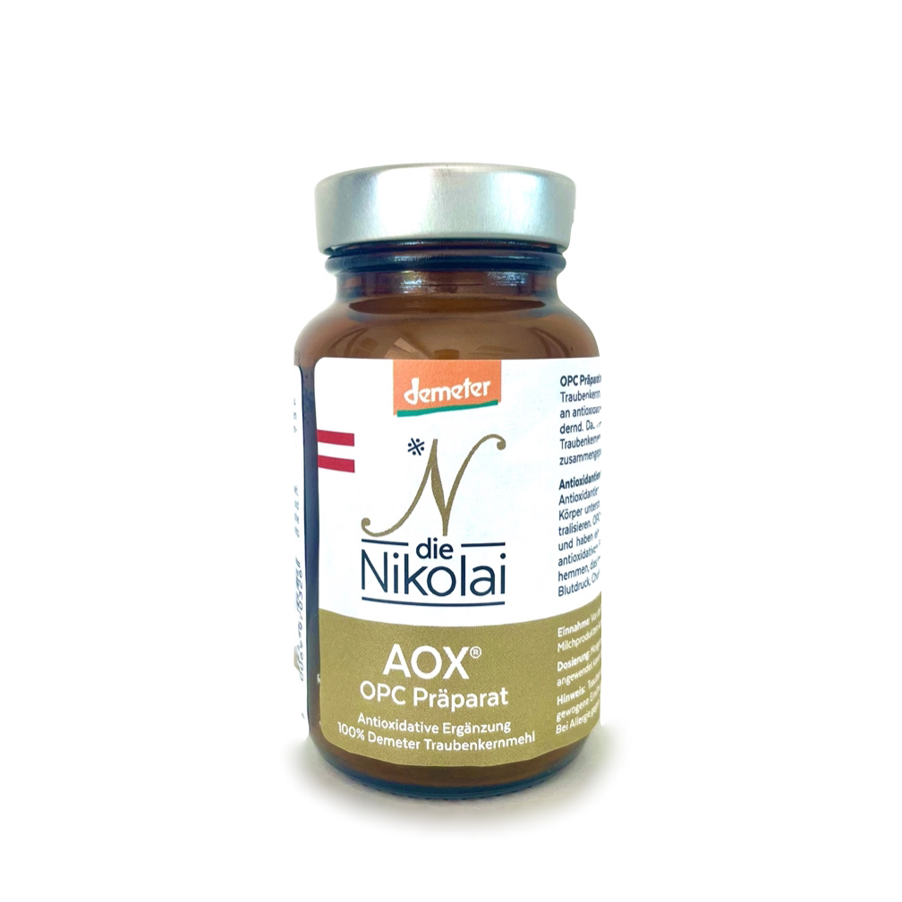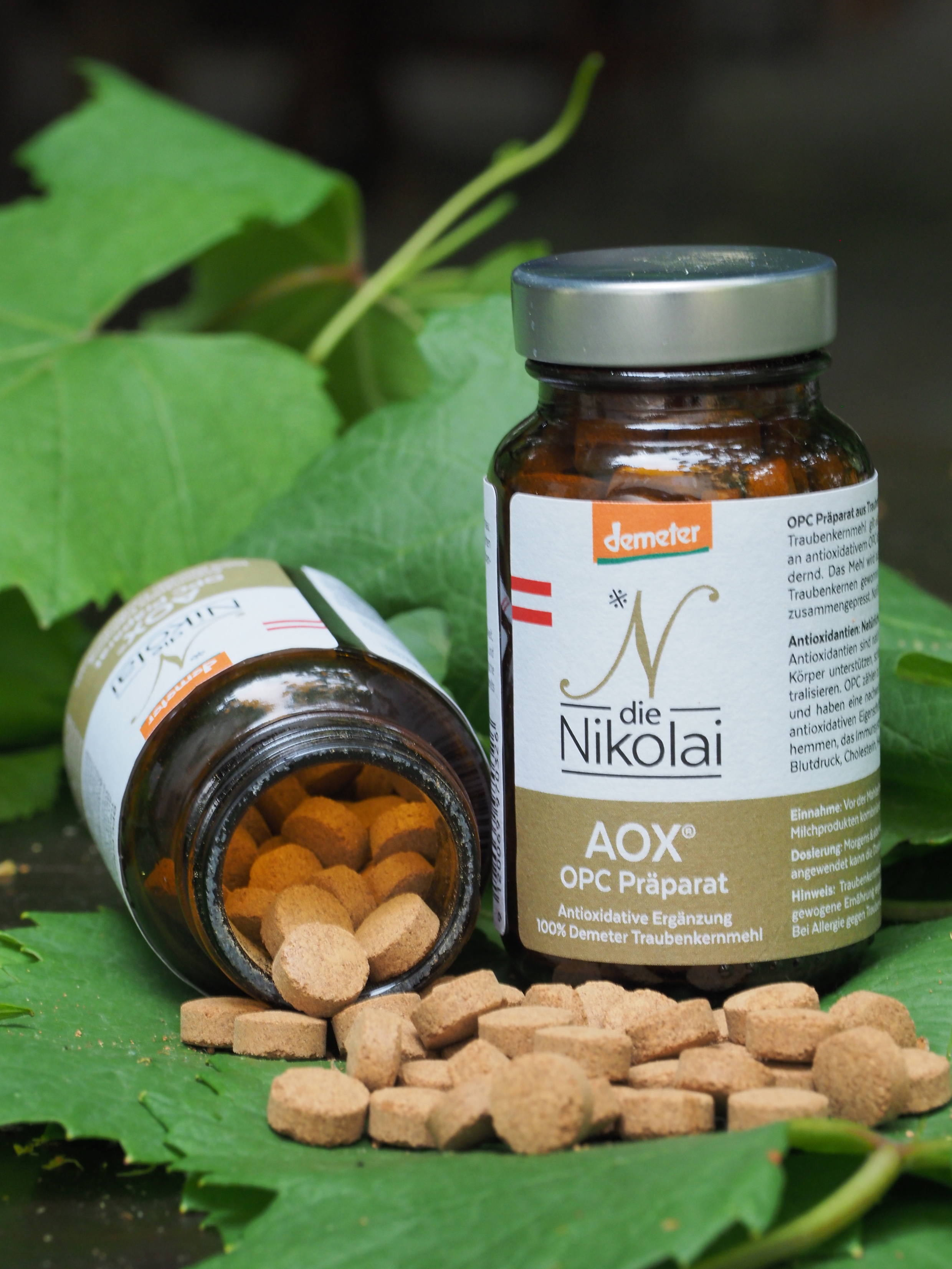 Das dieNikolai AOX OPC Präparat vom Nikolaihof Wachau ist online auf www.dieNikolai.at und in vielen Reformhäusern & Bioläden erhältlich. UVP € 24,- für 120 Tabletten (reicht für einen Monat).