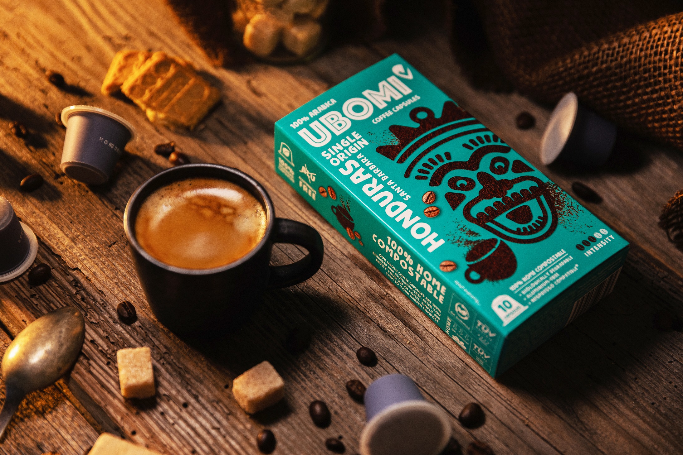 Die Kapseln von UBOMI bestehen gänzlich aus einem biologisch abbaubaren Material, das zu 100 Prozent aus biobasierter Zellulose und Pflanzenölen gewonnen wird. Sie sind die ersten Kaffeekapseln auf dem Markt, die zur umweltfreundlichen Entsorgung im Hausmüll vom TÜV zertifiziert wurden. Hersteller der Kapseln ist Capsul-in-Pro, ein Unternehmen in Luxemburg, das sich der Revolution von Kaffeekapseln verschrieben hat. „Wichtig ist auch, dass der Kaffee in unseren UBOMI-Kapseln Rainforest Alliance-zertifiziert ist – durch den Kauf der Kapseln unterstützen unsere Kund:innen die Rainforest Alliance und tragen zur Förderung einer umweltfreundlichen und fairen Landwirtschaft bei“